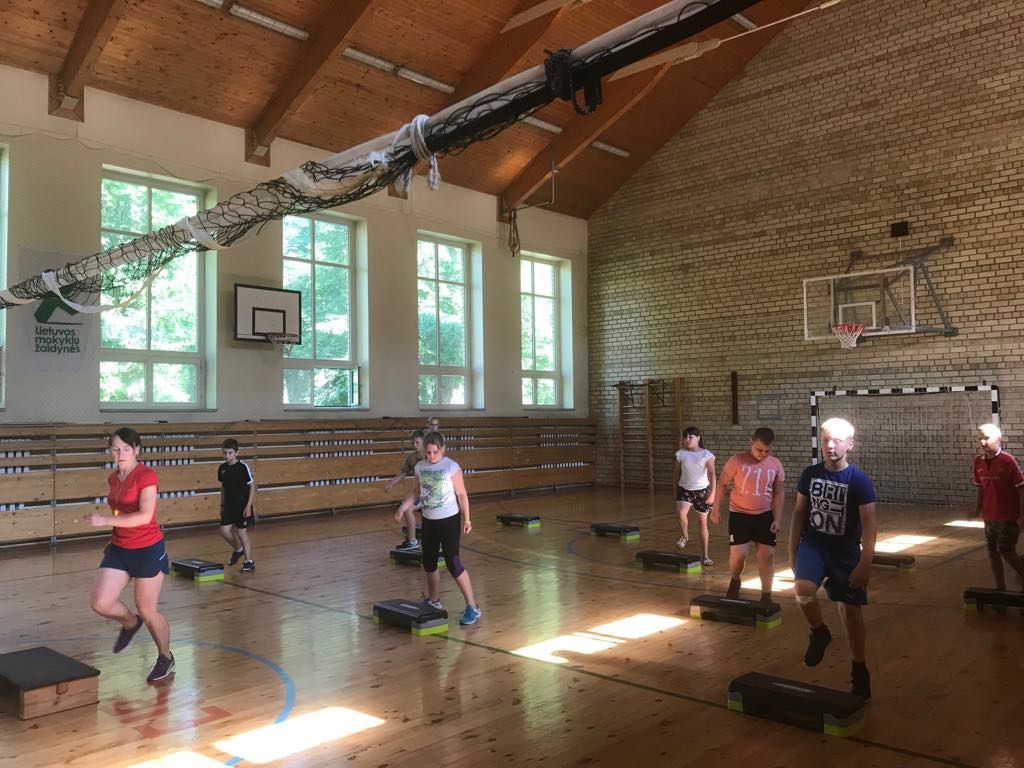 •Erdvios sporto, aktų, šokių salės, įrengtas žaidimų kambarys bei lauko žaidimų aikštelė mažiesiems;