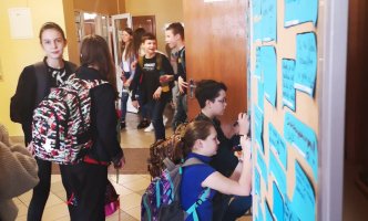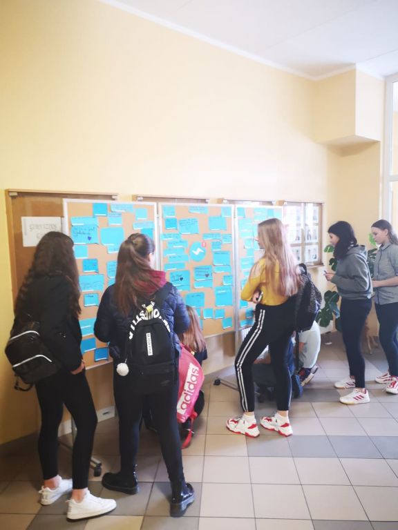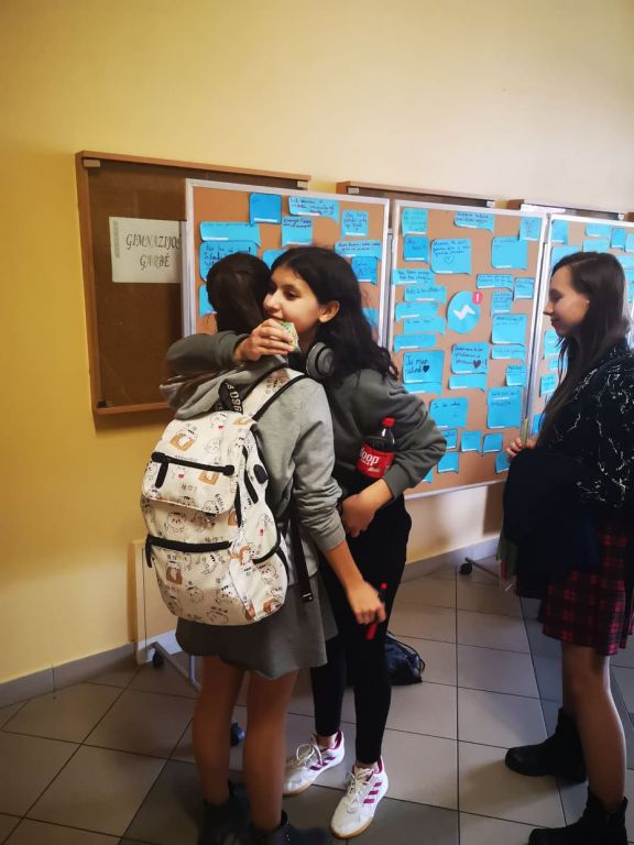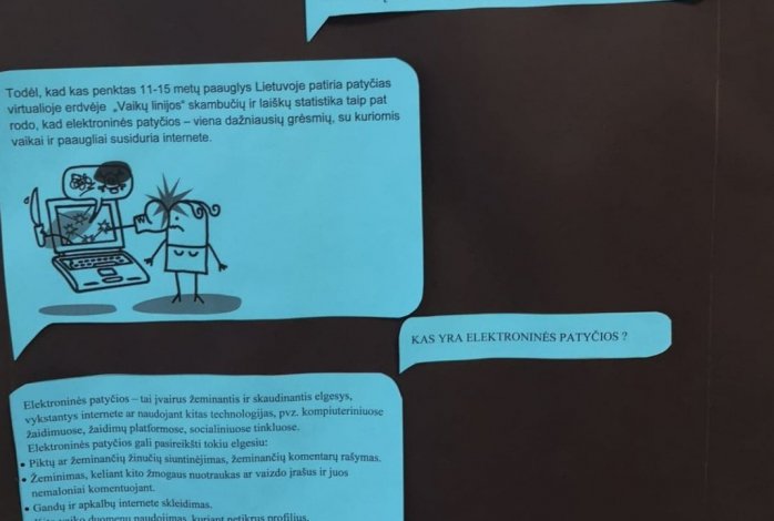 Paminėdama Sąmoningumo didinimo mėnesį BE PATYČIŲ, kiekviena klasė sukūrė telefono ekraną plakate ir taip pademonstravo tinkamo bendravimo elektroninėje erdvėje pavyzdį, siekdama užkirsti kelią patyčioms, kurios vyksta realybėje, o vėliau persikelia ir migruoja socialiniuose tinkluose, virtualiuose žaidimuose ir programėlėse. Šie „ekranai“ puošė kiekvienos klasės duris.