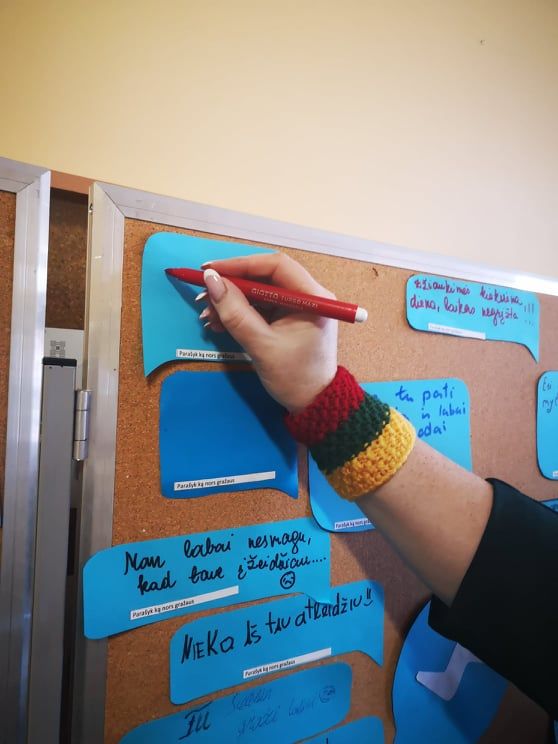 Didelio populiarumo sulaukė ir milžiniškas mūsų pačių pagamintas „Messenger“ prie įėjimo į gimnaziją durų. Ten kiekvienas galėjo parašyti savo draugui ką nors gero! Tai ir rašė: „Tu nesi vienas“, „Eime kartu“, „Ačiū už padrąsinimą ir palaikymą“, „Tu man rūpi“ ... Tai tik kelios frazės, kurias parašė mokiniai ir mokytojai „Messenger“ programėlę imituojančioje lentoje.