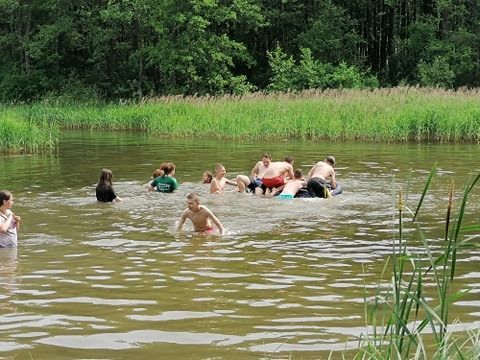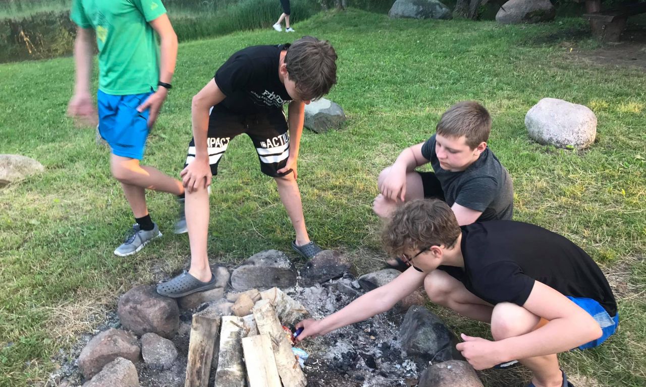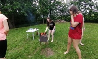 Statėme palapines, o kas nemokėjo išmoko, žaidėm tinklinį, futbolą, maudėmės, deginomės saulėje, žvejojome, kepėme šašlykus/dešreles..... O vakaro šokiai ant akmens.... Joninių išvakarėse kūrenome didelį laužą, drąsesni berniukai šokinėjo per laužą, mergaitės pynė vainikus. Paparčio žiedo nesuradome, ėjome palydėti saulės, nes dangus buvo purpurinės spalvos. Argi kas nors patikės, jeigu pasakysim, kad 2 valandą nakties dainavome prie laužo, o 6 valandą ryto maudėmės, 7 valandą žaidėme tinklinį... Emocijos ir juokas tiesiog liejosi.