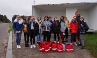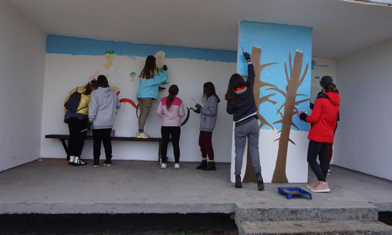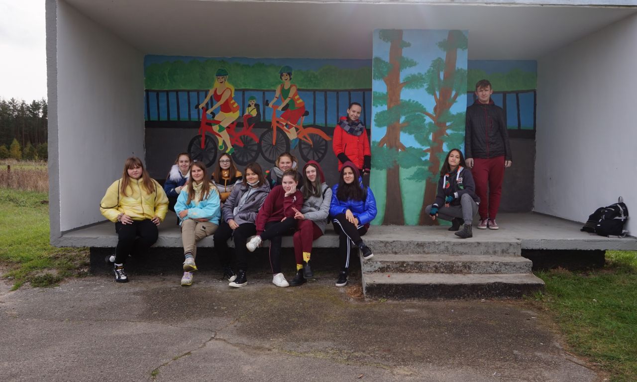 Šiemet spalio 20 d. būrelis mūsų gimnazijos mokinių puikiai nusiteikę vyko į Tetėnus. Kelionės tikslas – papuošti šio kaimo autobusų stotelę. Kartu su dailės mokytoja J.Sinkevič ant Tetėnų autobuso stotelės sienos kruopščiai tapėme aštuntokės Austėjos piešinį. Juk ji tapo viena iš piešinių konkurso „Saugus eismas kelyje 2020“, kurį inicijavo Lietuvos automobilių kelių direkcija, nugalėtojų. Konkurso metu Lietuva buvo suskirstyta į tris teritorijas ir kiekvienoje teritorijoje laimėtojais išrinkti po du labiausiai temą atspindintys mokinių piešiniai, kurie ir buvo perpiešti ant autobusų stotelių paviljonų sienų.
