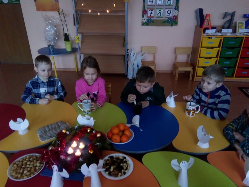 Gruodžio 11 d. priešmokyklinio ugdymo grupėje skambėjo adventinės giesmės. Ši diena prasidėjo kitaip nei įprasta. Šiandien – adventinė popietė. Mums labai pasisekė- lauke prisnigo sniego, jautėsi šventinė nuotaika. Susitvarkę savo žaislus susėdome prie bendro apvalaus stalo.