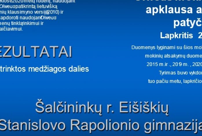 2020 metų OLWEUS PPP KASMETINIO TYRIMO REZULTATAI