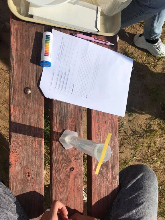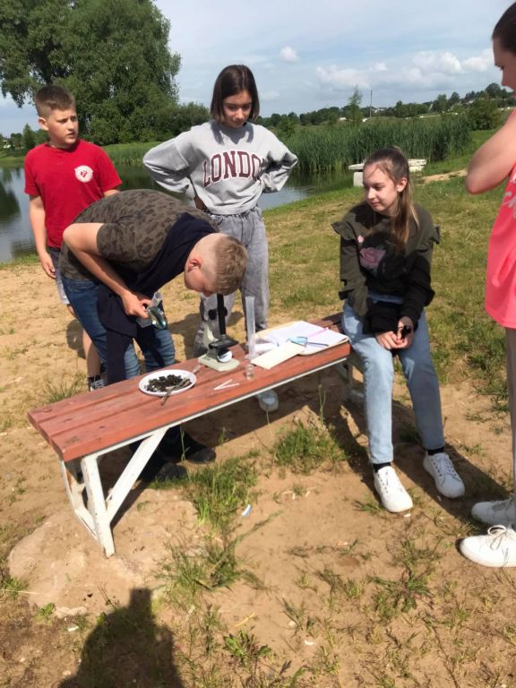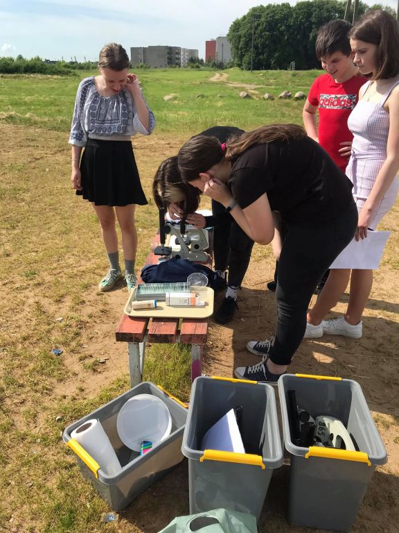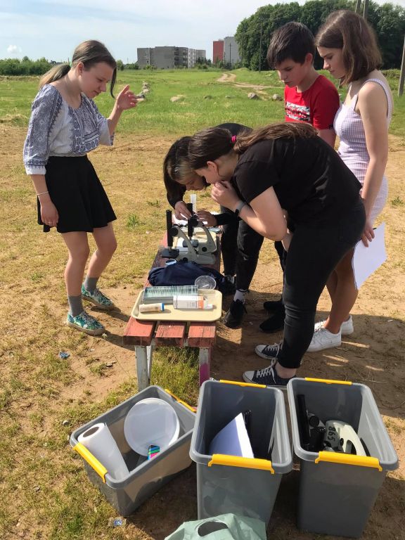 Atėjus vasaros šilumai, visi traukia pailsėti prie vandens telkinių. Eišiškių miestelis turi savo mažą vandens telkinuką – vietinių vadinamą „baseika“. Bet ar saugu čia maudytis? Netradicinės pamokos metu, nusprendėme tai patikrinti su 7-tos klasės mokiniais ir atlikome vandens būklės tyrimą. Matavome vandens temperatūrą, pH, nitritų ir nitratų kiekį bei vandens drumstumą. Tyrėme dumblo rūšinę įvairovę, ieškojome vandens bioindikatorių. Radome: laumžirgių lervų, apsiuvos lervų, ovalinių geldučių, geltonkraštę dusią, uodų lervų, tubifeksų. Stebėdami pro mikroskopą, radome titnagdumblių bei šoniplaukių.