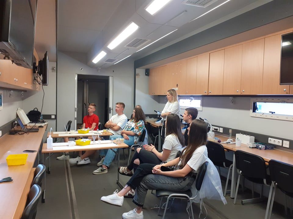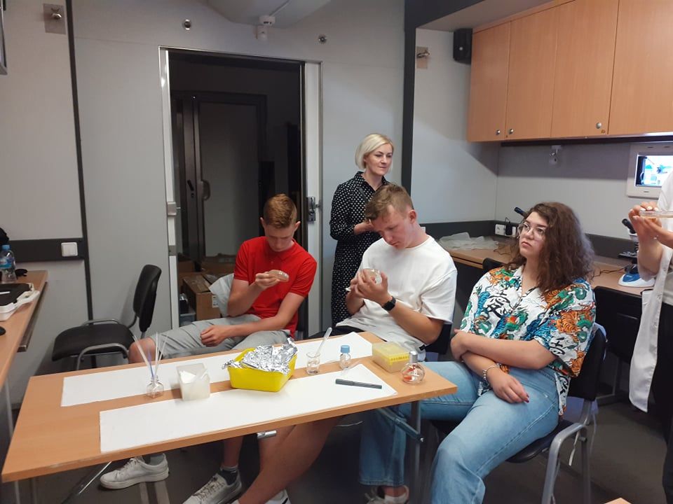 Mūsų gimnazija birželio 10 d. tapo mokslu besidominčių jaunuolių traukos centru – į gimnazijos kiemą užsuko neįprastas modernios mokslinės įrangos prikrautas vilkikas „MoMoLab“. Tai mobilioji mokslinė laboratorija, kuri sudomino 8-10, I-IIIG klasių mokinius. Jaunuoliai noriai dalyvavo mokslinėje –praktinėje veikloje - projekte: „Mokinių gebėjimų atskleidimo ir jų ugdymo sistemos plėtra“. Mokslininkai, atvykę su šia mobiliąja laboratorija, pristatė STEAM mokslų įdomybes. Mokiniai dalyvavo mikrobiologijos ir fizikinių reiškinių tiriamosiose veiklose.