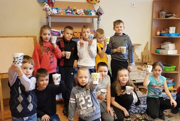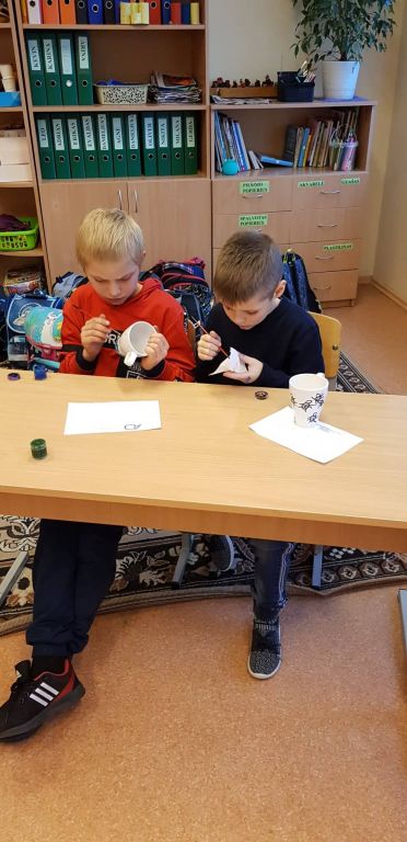 Prieš mokinių rudens atostogas spalio 28 d. naudodamiesi Kultūros paso paslauga 2, 3b ir 4b klasių mokiniai dalyvavo edukaciniame užsiėmime „Mano raštuotas puodelis“, kurį organizavo MB Audronės dizaino inovacijų studija (ADI Keramikos studija) . Užsiėmimo metu vaikai susipažino su keramikos dekoravimo technikomis, išmoko perteikti kilusias kūrybines idėjas, įgijo spalvų derinimo pagrindines žinias. Šių pamokėlių metu mokiniai išbandė keramikai skirtus dažus ir markerius. Jų pagalba sukūrė unikalius puodelius, kuriuos papuošė savo sukurtais piešiniais, ornamentais. Išdekoruotus puodelius po užsiėmimo mokiniai pasiliko sau.