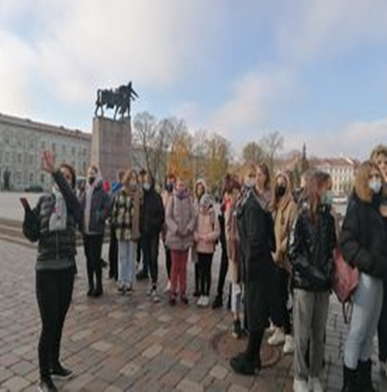 Spalio mėnesį vėl susitikome: vykome į Vilnių ir dalyvavome ekskursijoje “Kultūrų atspindžiai Vilniaus senamiestyje”. Aplankėme daug istorinių vietų, kopėme į Gedimino pilies kalną bei Trijų kryžių kalną. Oras buvo tiesiog nuostabus, todėl laiką praleidome puikiai. Mokiniai dar artimiau susipažino, pabuvo kartu.