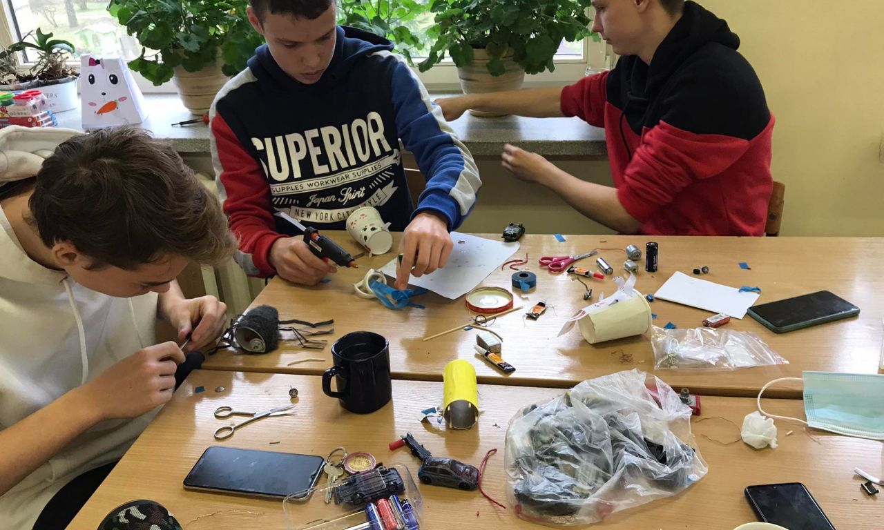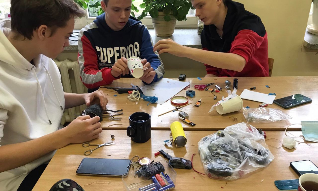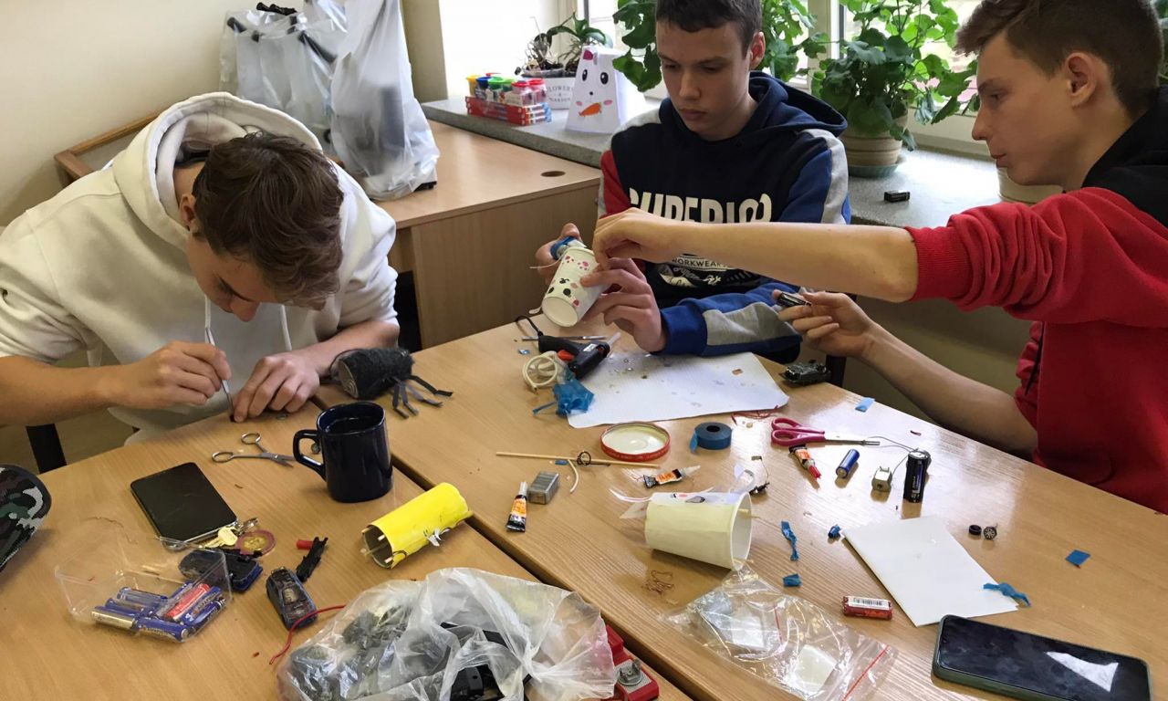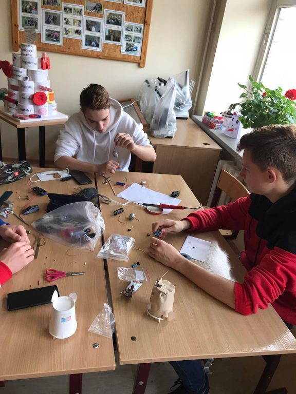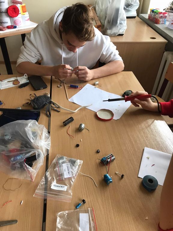 Vykdydami Erasmus+ projektą „ STEAM i STEAM work“ , IG klasės vaikinai Edvinas Kulešo, Deividas Jurgelevičius bei Eimantas Mikelevičius remdamiesi fizikos žiniomis bei smagiai dirbdami, keletą gyvūnėlių išjudino ir pradžiugino penktokėlius.