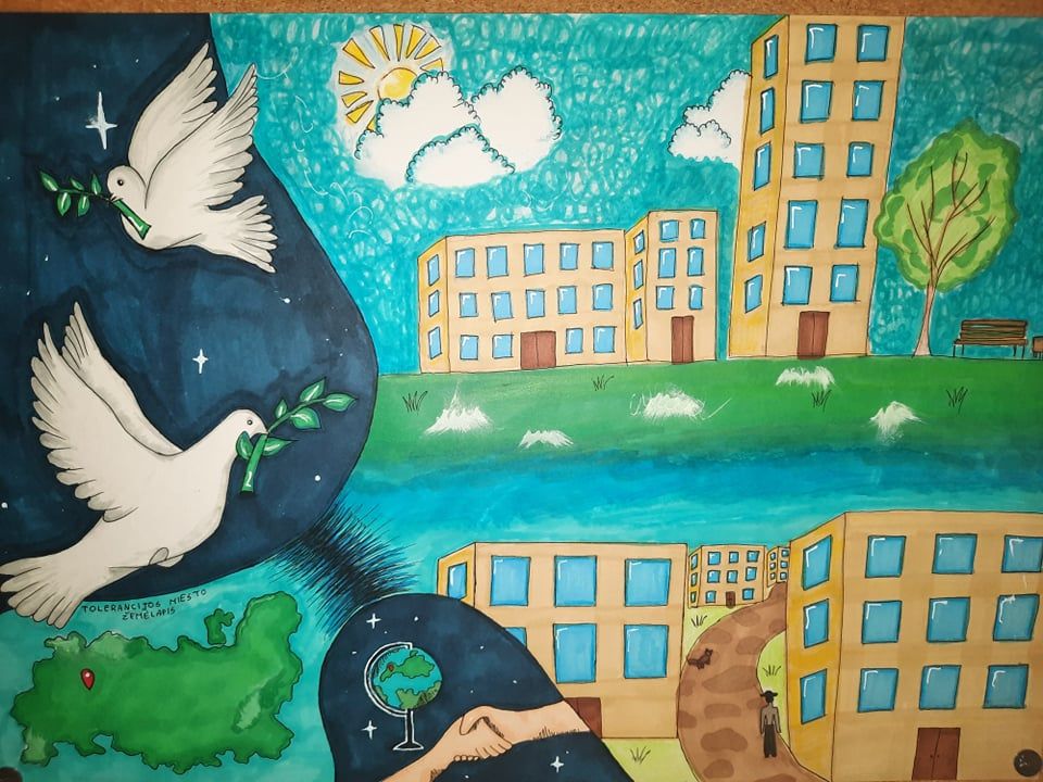 Lapkričio 16 dieną minėjome Tolerancijos dieną. Šiais metais Tarptautinės Tolerancijos dienos simbolis – MIESTAS. Klasių vadovai klasių valandėlių metu diskutavo su mokiniais, kas yra tolerancija? Kas man yra tolerantiškas miestas? Ką norėčiau matyti tolerantiškame mieste? Ko neturėtų būti tolerantiškame mieste? Mokiniai piešė, vaizdavo, statė tolerantiškus miestus, darė ir tolerantiškų miestų koliažus. Per pertraukas skambėjo dainos apie draugystę.