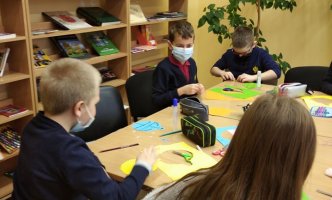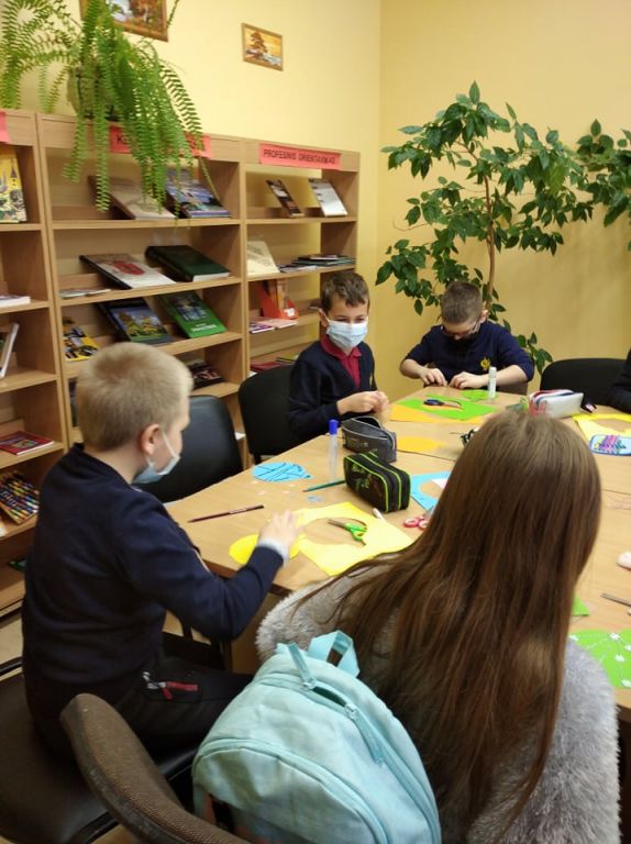 Biblioteką savo sukurtais darbeliais papuošė 3a klasės mokiniai.