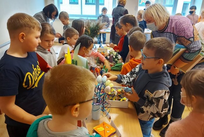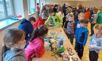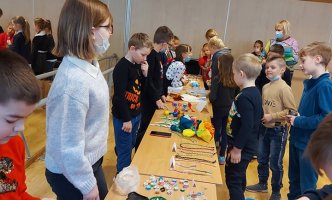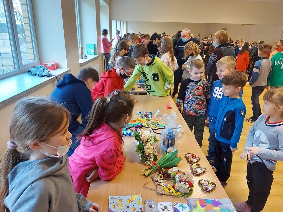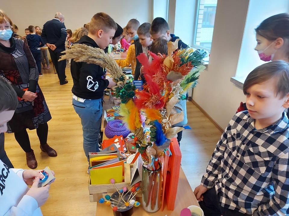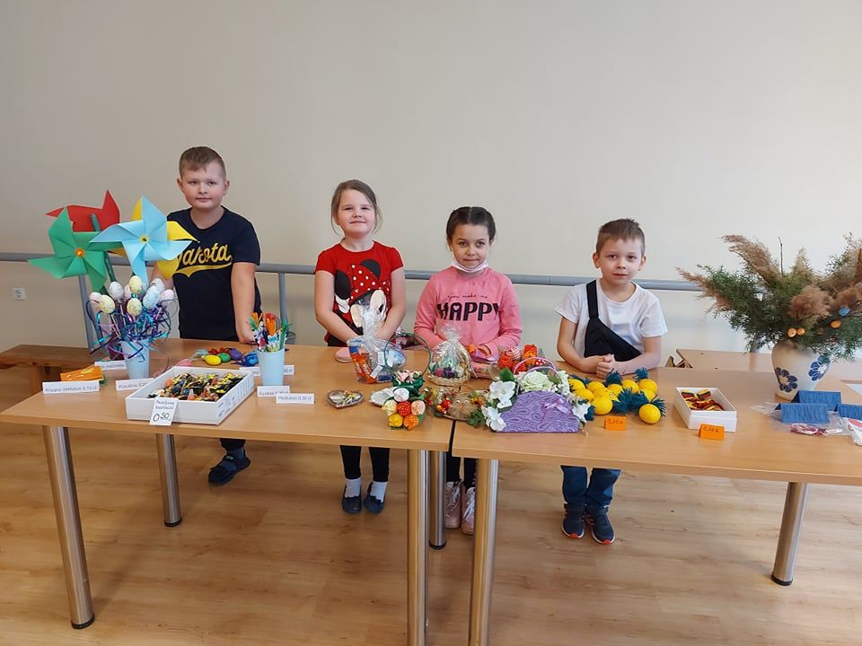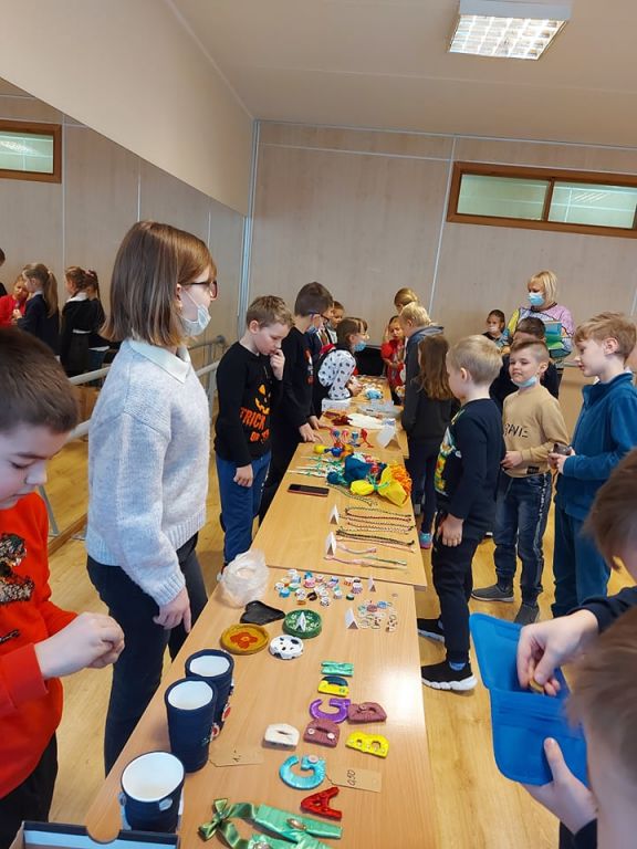 Pradinių klasių mokiniai šiai mugei ruošėsi noriai ir aktyviai. Jau nuo pat ryto stalai buvo nukrauti pačių vaikų pagamintais darbeliais : verbos, įvairūs darbeliai iš popieriaus, molio, rankų darbo papuošalai iš siūlų , servetėlės ir daugybė kitų. Truputėlį buvo nerimo, nes šiemet nuspręsta apsieiti be saldumynų. Tačiau tiek „pardavėjams“, tiek „pirkėjams“ buvo įdomu ir gera.