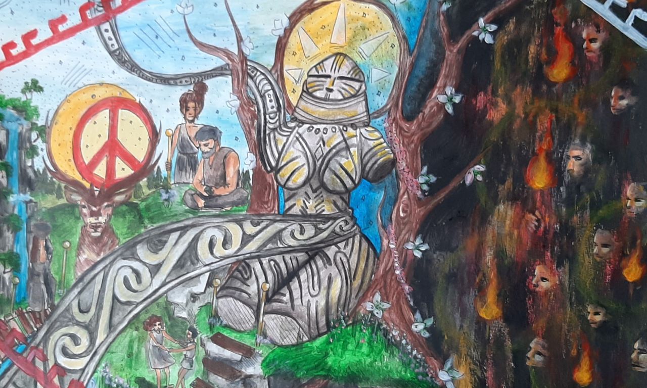2022 metų Lietuvos mokinių dailės olimpiados tema - „Laikmečių atradimai“. Organizatoriai dalyviams įkvėpimo siūlė pasisemti Lietuvos Nacionalinio dailės muziejaus Istorijų namuose vykstančioje parodoje, skirtoje Marijos Gimbutienės 100 – „Deivės ir kariai“. Šioje parodoje pristatomi eksponatai, kurių pagrindu Marija Gimbutienė iškėlė hipotezę apie Senosios Europos matristinę civilizaciją. Čia taikiai sugyvenę žmonės dirbo žemę, puoselėjo menus ir garbino Deivę Kūrėją. Vėliau ši civilizacija sunyko, ją paveržė klajokliai gyvulių augintojai - kariai, atnešdami kitą kultūrą ir socialinę santvarką.