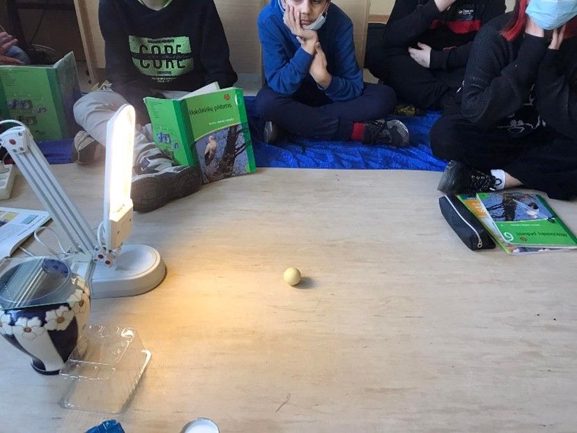 Tie, kas dar nežino, kodėl būna Saulės ir Mėnulio užtemimai, gali kreiptis į mūsų gimnazijos šeštokus, nes jie tikrai sugebės Jums paaiškinti. Kodėl? O todėl, kad per gamtos pamoką jie šiuos gamtos reiškinius pažino ne tik iš vadovėlio, bet ir patys modeliavo Saulės ir Mėnulio užtemimus. Prieš tai jie išsiaiškino, kas yra šešėlis. Naudodamiesi anksčiau įgytomis žiniomis apie šviesos atspindį ir šviesos praleidimą, nurodė, kad neskaidrūs kūnai šviesos nepraleidžia, bet atspindi, o skaidrūs kūnai – šviesą praleidžia. Vėliau savo hipotezes patikrino, ir jų spėjimai pasitvirtino. Tik neskaidrūs kūnai turi šešėlius, nes nepraleidžia šviesos, o už jų susidaro erdvė, į kurią nepatenka šviesa. Tai ir yra šešėlis. Žemė ir Mėnulis yra neskaidrūs kūnai, todėl irgi turi šešėlius. Kai Mėnulis patenka į Žemės šešėlį, būna Mėnulio užtemimas, o Kai Mėnulio šešėlis krenta ant Žemės, toje Žemės vietoje žmonės stebi Saulės užtemimą.