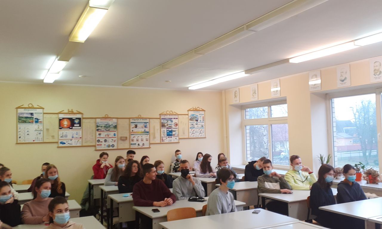 Susitikimo metu II-IVG klasių gimnazistai susipažino su Vilniaus Universiteto įkūrimo istorija, diskutavo, kodėl įdomu studijuoti viename iš prestižinių pasaulio universitetų. VU atstovas pateikė daug informacijos apie universiteto struktūrą, fakultetus , stojimo į VU reikalavimus , konkursinio balo skaičiavimo metodiką, studijų pakopas. Giliai ir išsamiai paaiškino apie biomedicininius, humanitarinius, socialinius, technologijų mokslus. Vyko labai įdomi diskusija apie studentišką veiklą ir gyvenimą, gimnazistai gavo informacijos apie VU sveikatos ir sporto centrą, gyvybės mokslų centrą, Vilniaus Universiteto bibliotekos mokslinės komunikacijos ir informacijos centrą, apie Santaros klinikų veikla.
