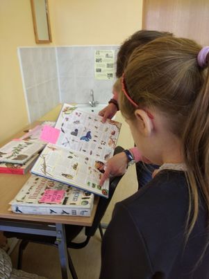 Pasaulio pažinimo ir bibliotekinės veiklos metu antrokai padainavo, pašoko kaip vabaliukai, o vėliau aiškinosi ir įvardijo, kuo vabzdžiai skiriasi nuo žvėrių-žinduolių, kokios yra vabzdžių kūno dalys, atpažino vabzdžius ir, išklausę mokytojos Liudos Šeškienės suvaidintos pasakėlės, išsiaiškino bei sužinojo, kaip vystosi vabzdžiai. Dabar tikrai žinos, kieno jauniklius vadiname lervomis.