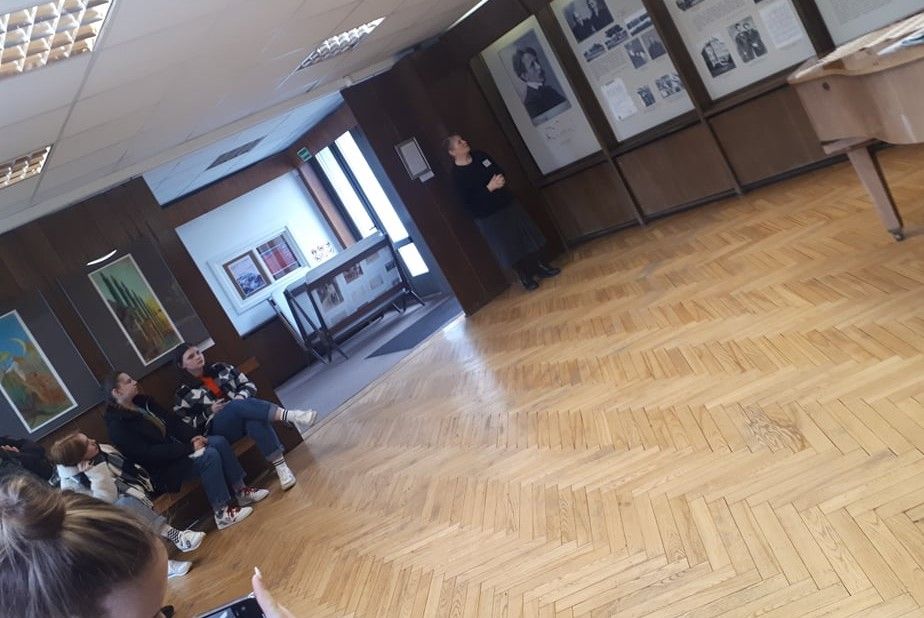 Balandžio 21 dieną aštuntokai, dešimtokai ir keli šeštokai vyko į pažintinę – pramoginę išvyką į Druskininkus. Lankėmės M. K. Čiurlionio memorialiniame muziejuje. Mus pasitiko malonios muziejaus darbuotojos. Muziejaus gidė labai šiltai, įtraukiamai, nuoširdžiai pasakojo didžiojo menininko M. K. Čiurlionio biografijos faktus, akcentavo svarbiausius jo gyvenimo įvykius. Mokiniai turėjo galimybę pabuvoti kompozitoriaus, menininko kūrybos kambarėlyje, apžiūrėti jo paletę. Susipažinome su M.K.Čiurlionio kūryba. Labai įspūdinga! Kiekvienas rinkomės patikusį kūrinį, savaip juos suprasdami ir interpretuodami. Esame dėkingi nuostabiai gidei Lydai už įdomią ekskursiją po muziejų!