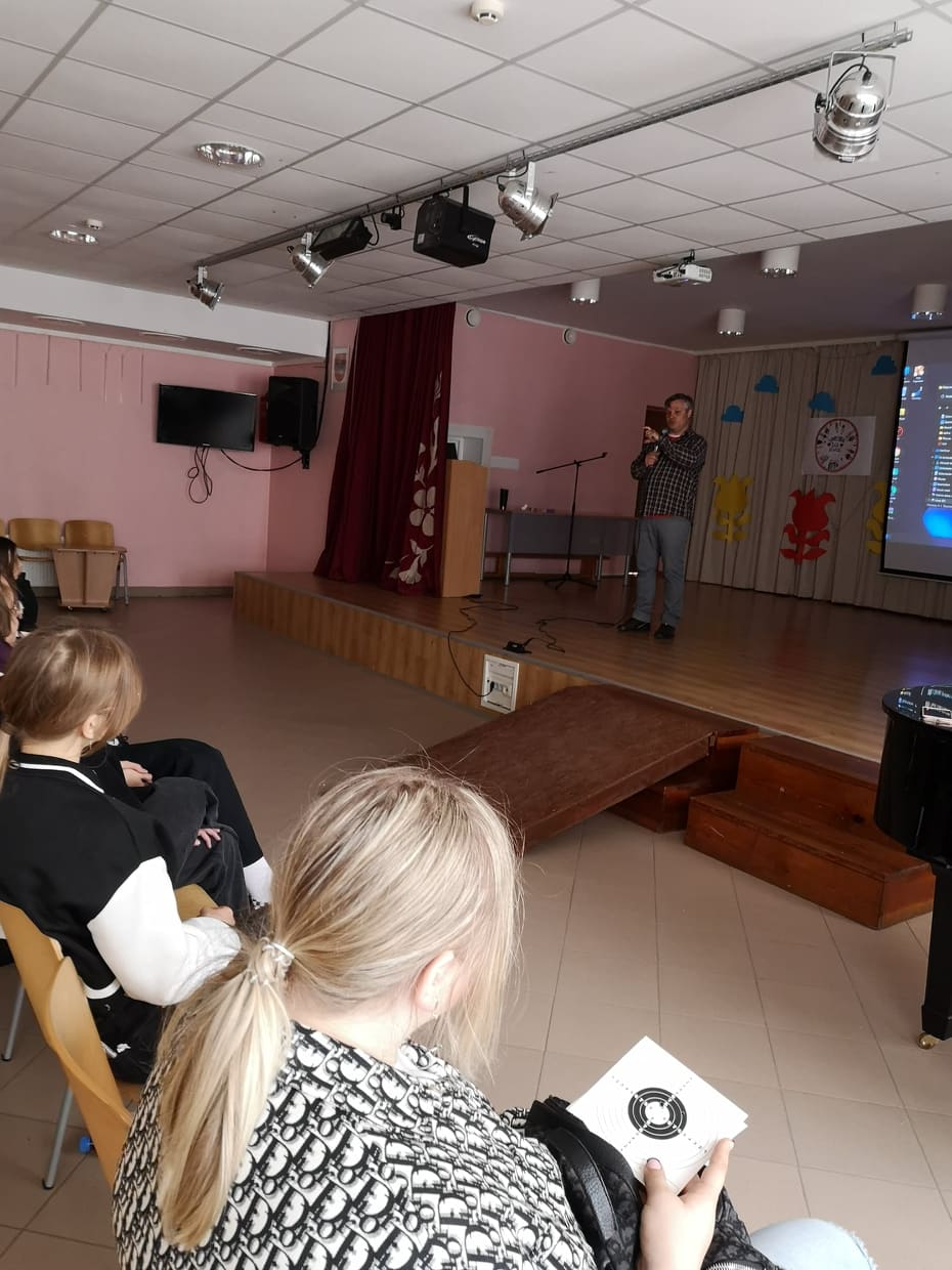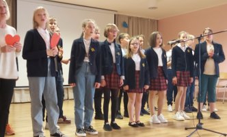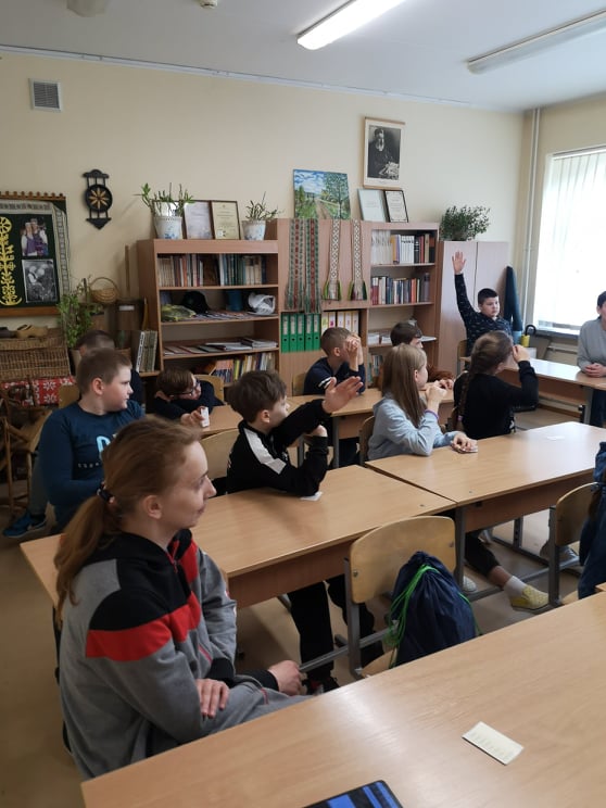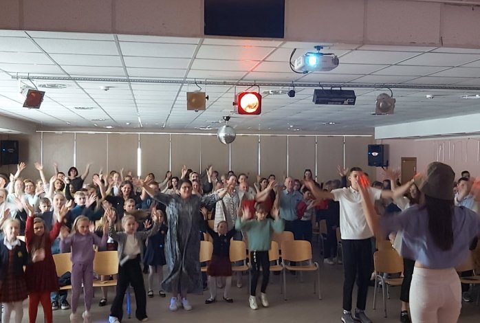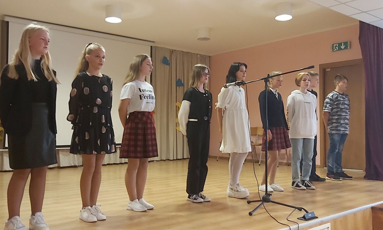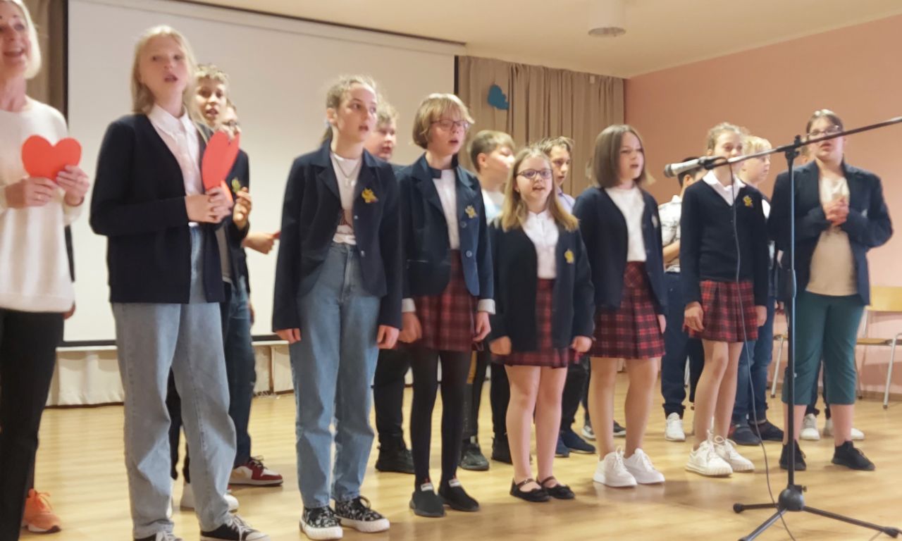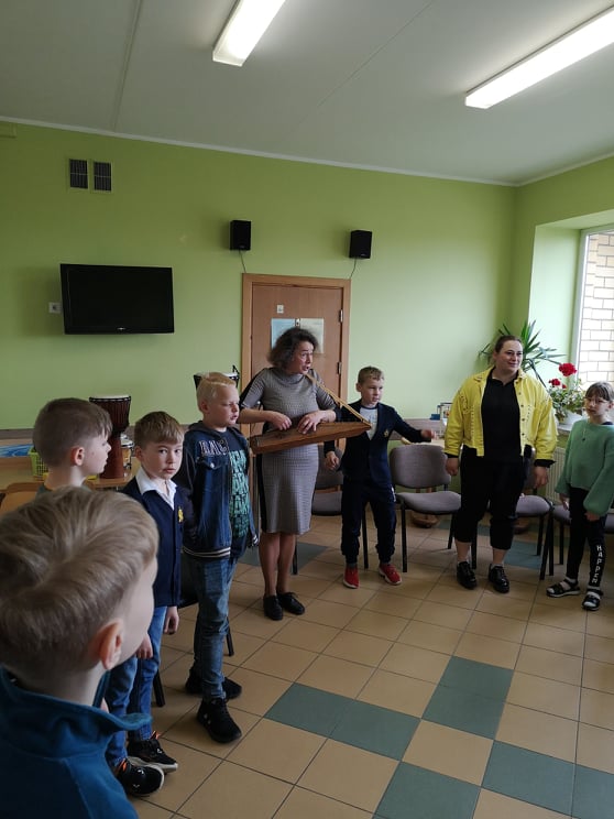 Muzikos ir dailės mokytoja Jadvyga Sinkevič antrokus ir jų tėvelius pakvietė į muzikinę erdvę, kur visi kartu dainavo pritariant kanklėms ir kitiems muzikos instrumentams.