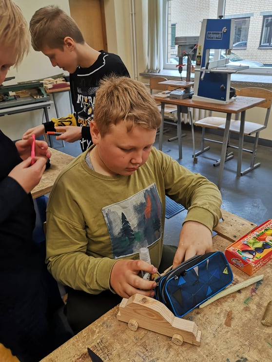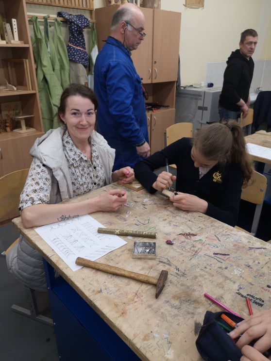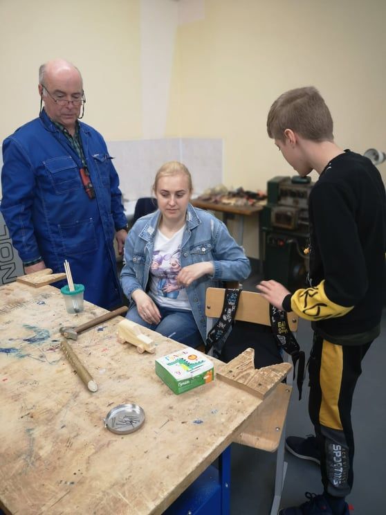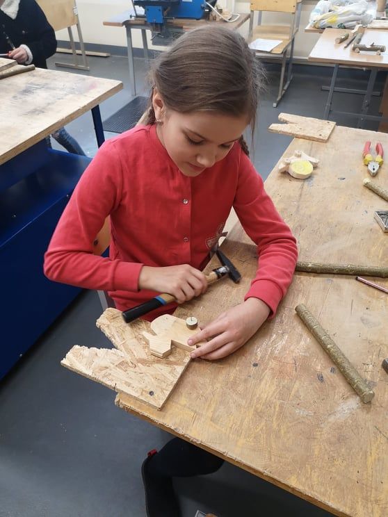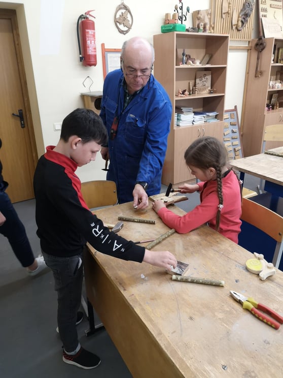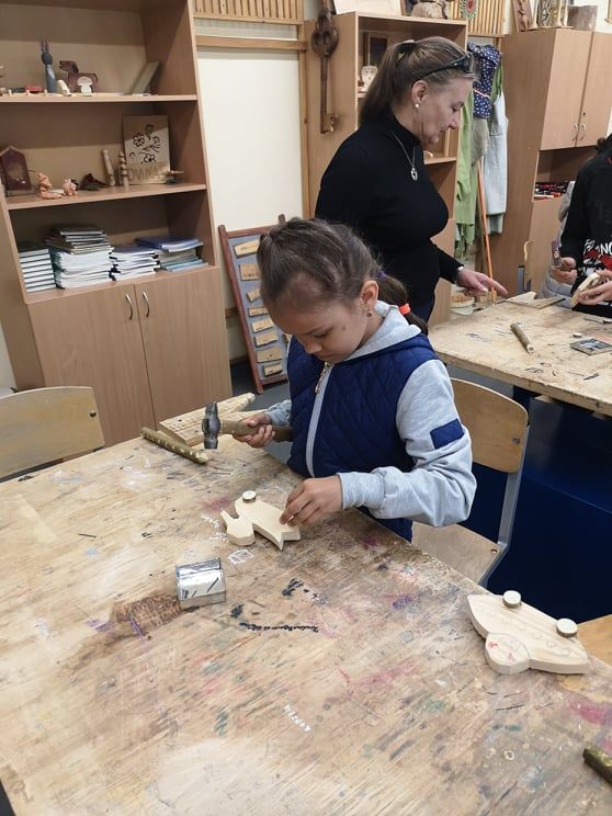 Technologijų mokytojas Gintaras Turonis organizavo kūrybines dirbtuves „Senovinio žaisliuko gamyba“ . Buvo smagu matyti vaikus kartu su tėvais gaminančius medinius žaisliukus.