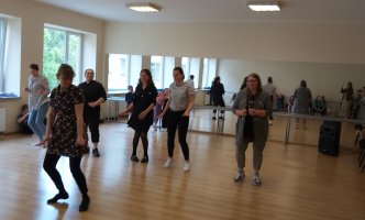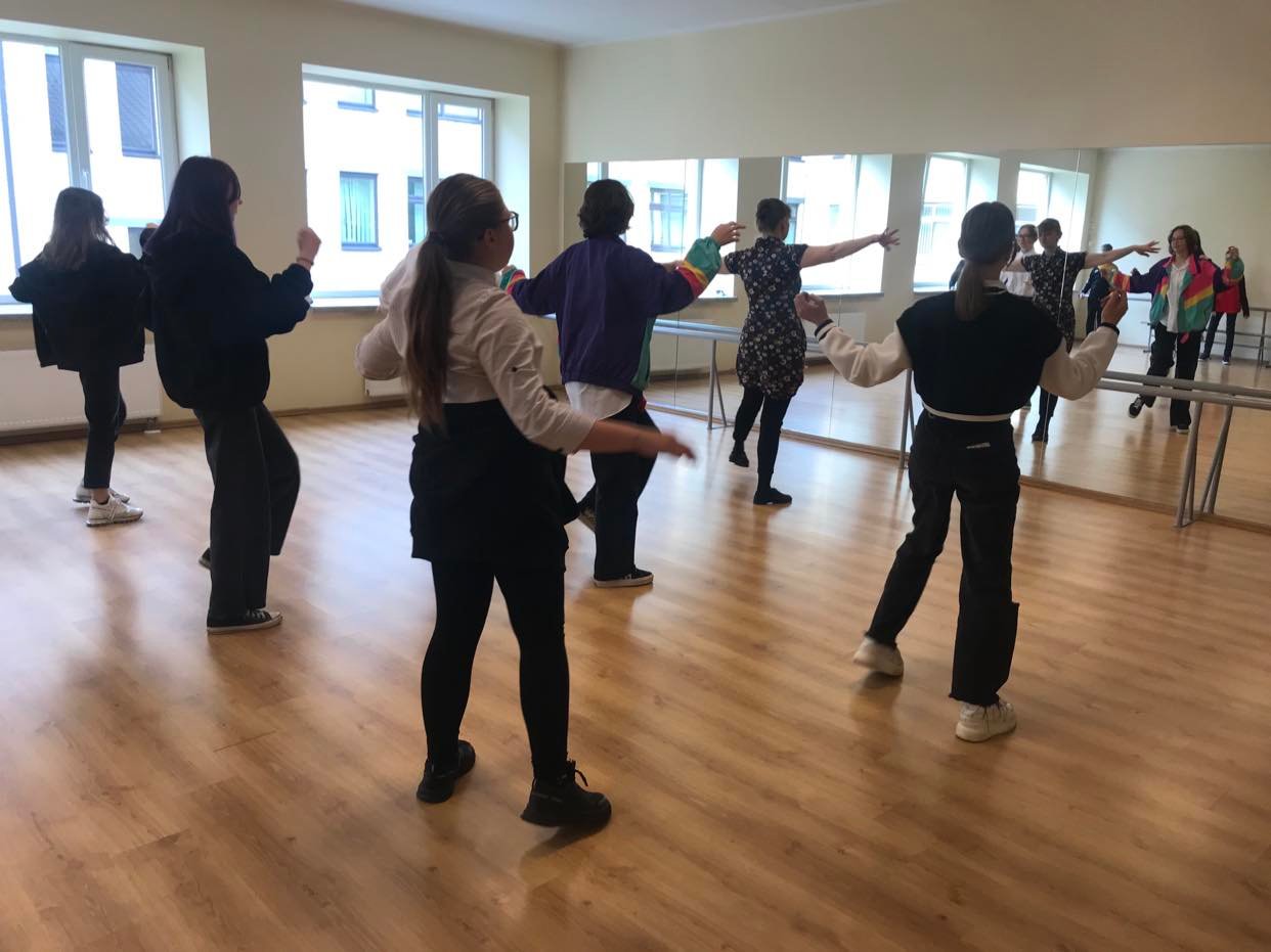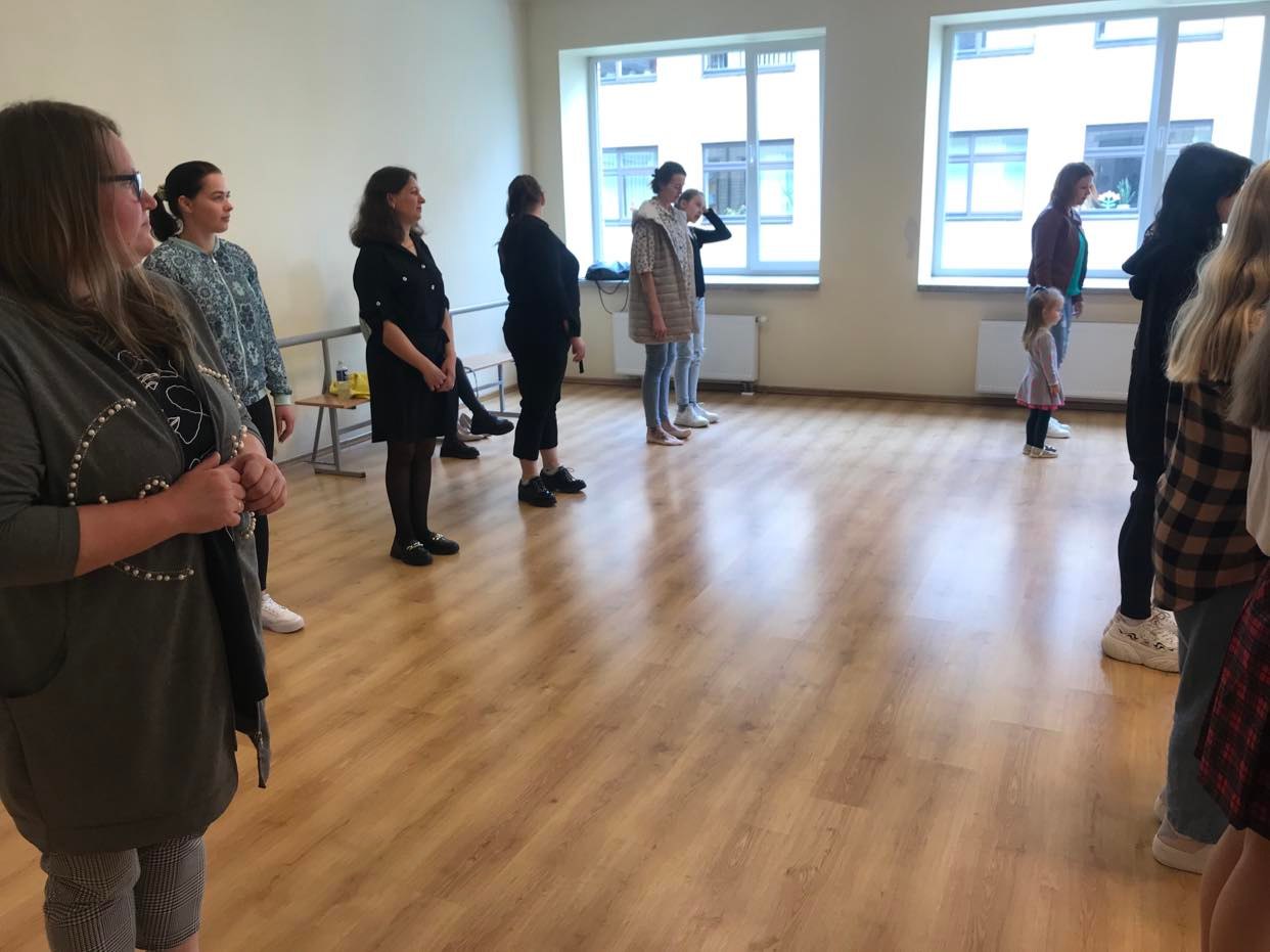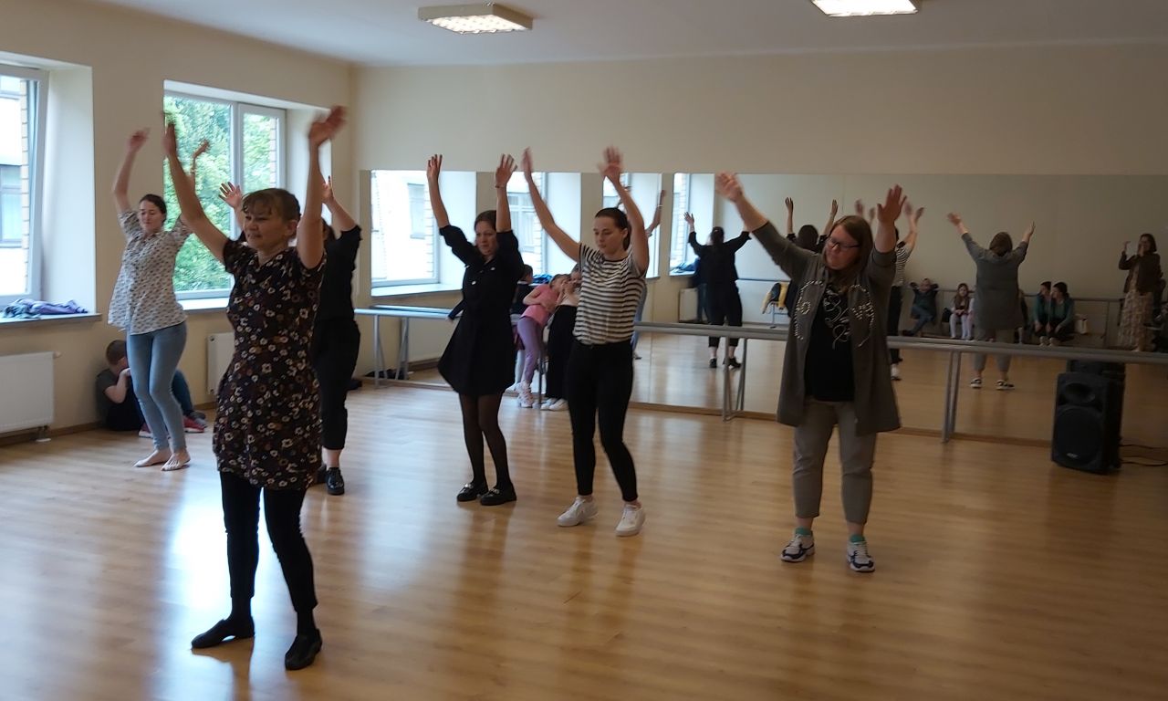 Šokio mokytoja Janina Oszustovicz pakvietė į linijinio šokio erdvę. Smagu buvo matyti, kai su vaikais kartu šoko ir jų tėveliai.