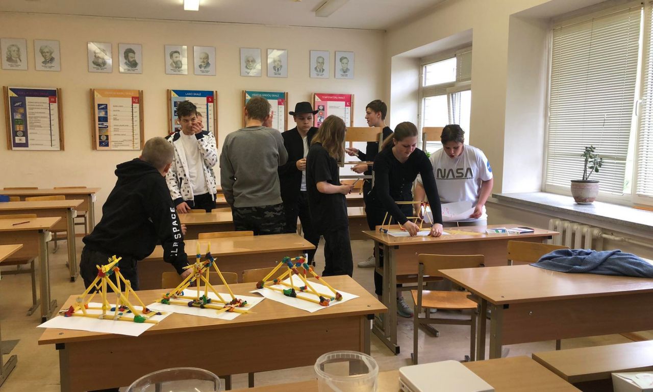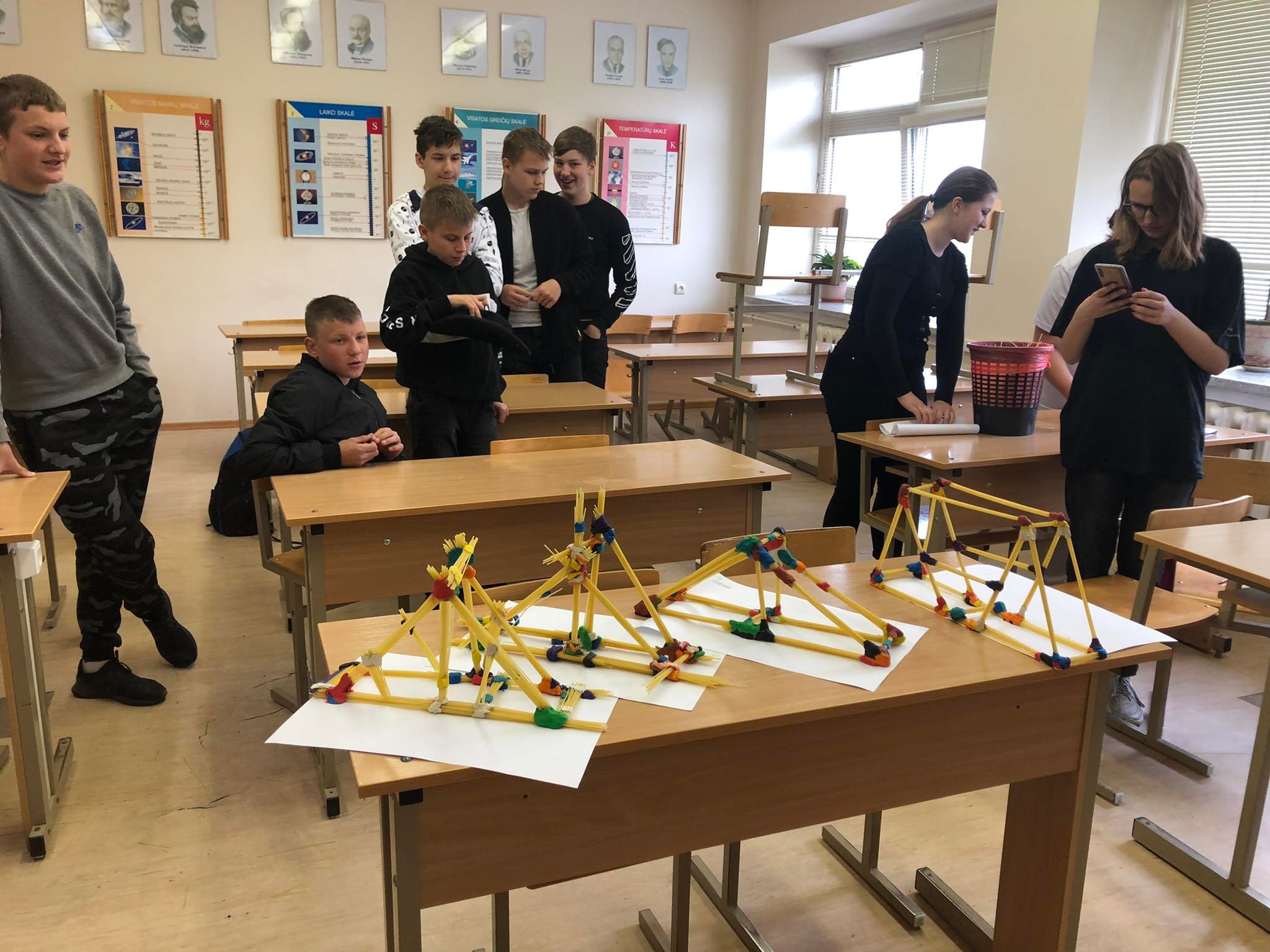 Jau antrą kartą fizikos mokytoja Regina Nekrevič ir mūsų gimnazijos direktorė Danuta Zuzo pakvietė mokinius į “Makaronų tiltus”. Buvo smagu statyti makaronų tiltus, o paskui …..juos griauti.