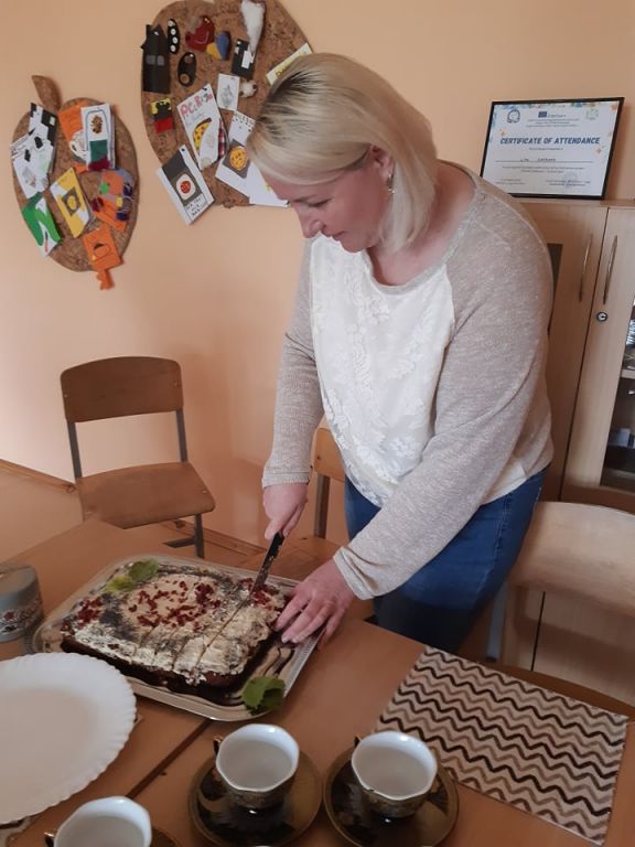 Žinoma, kokia gi šeimos šventė be pyrago! Gimnazijos valgyklos darbuotojos iškepė didžiulį pyragą ir pakvietė po šventės visus pasivaišinti pyragu ir arbata. Dėkojame joms!!!