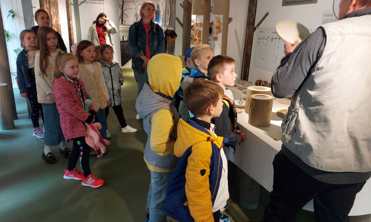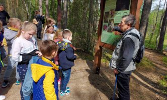 Atvykusius į Marcinkonių lankytojų centrą mus pasitiko gidas, kuris papasakojo apie centre įkurtą ekspoziciją „Girių apsuptyje“. Vaikai galėjo ne tik apžiūrėti įvairias ekspozicijas, bet ir paklausyti paukščių garsų pamėgdžiojimų, smėlyje įspausti įvairių gyvūnų pėdas, atspėti, kokio tai gyvūno pėdsakas. Apžiūrėję ekspozicijas, važiavome iki Zackagirio pažintinio tako, kur teko apie 1 km keliauti miško taku pėsčiomis. Šio pasivaikščiojimo tikslas - pamatyti aukštapelkę, kopas be jūros.