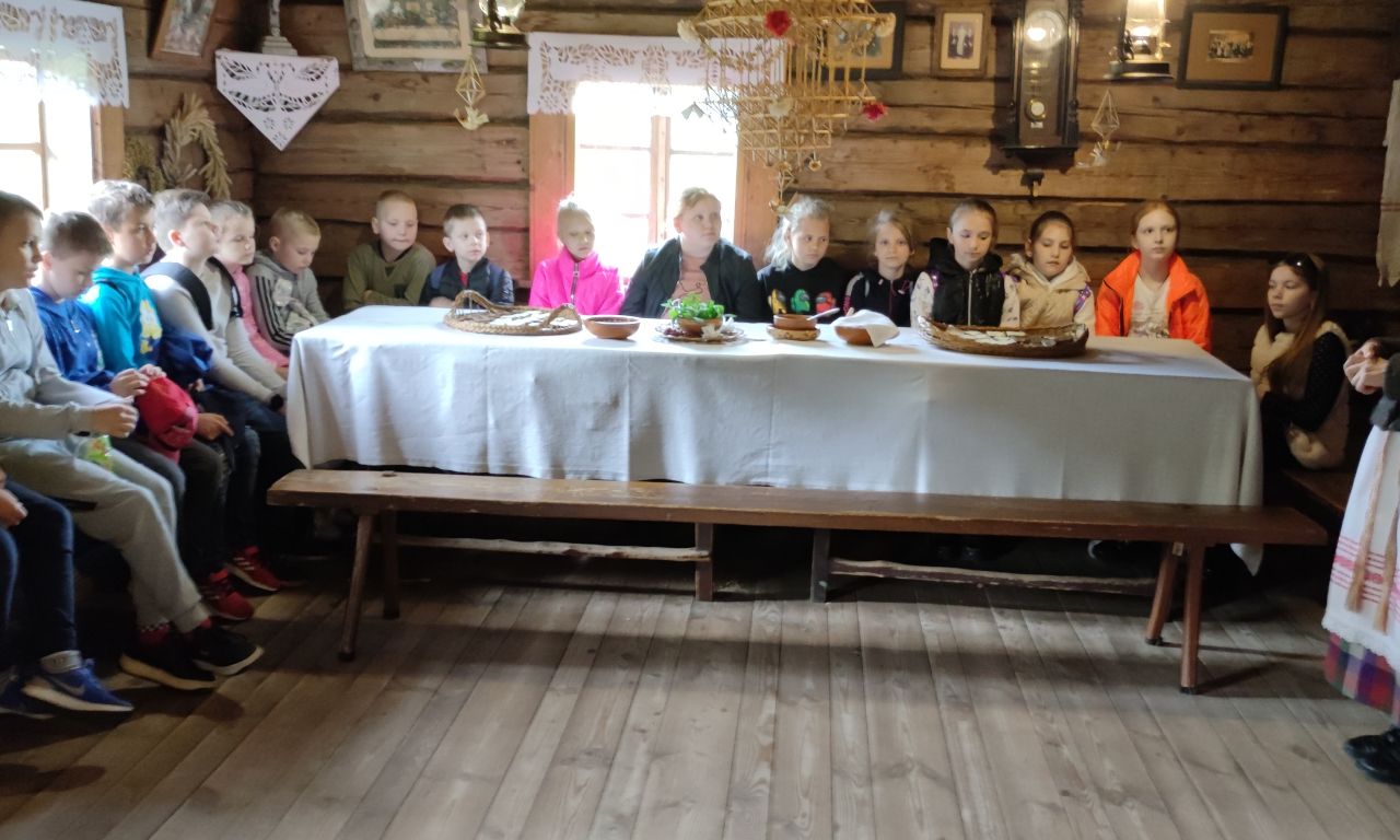 Buvome pakviesti į seklyčioje vykstančią pabaigtuvių šventę, kurios metu buvo pritaikytos anuomet galiojusios svečių elgesio taisyklės. Vaišinomės juoda duona su medumi ir sviestu, žaidėme tradicinius vaikų žaidimus. Padėkoję šeimininkei ir pažadėję sugrįžti, į miestelį grįžome vežimaičiuose, kuriuos traukė mieli arkliukai.