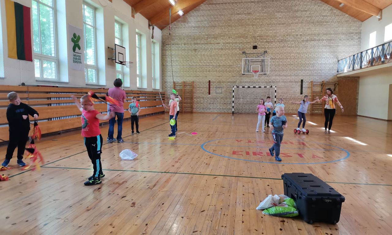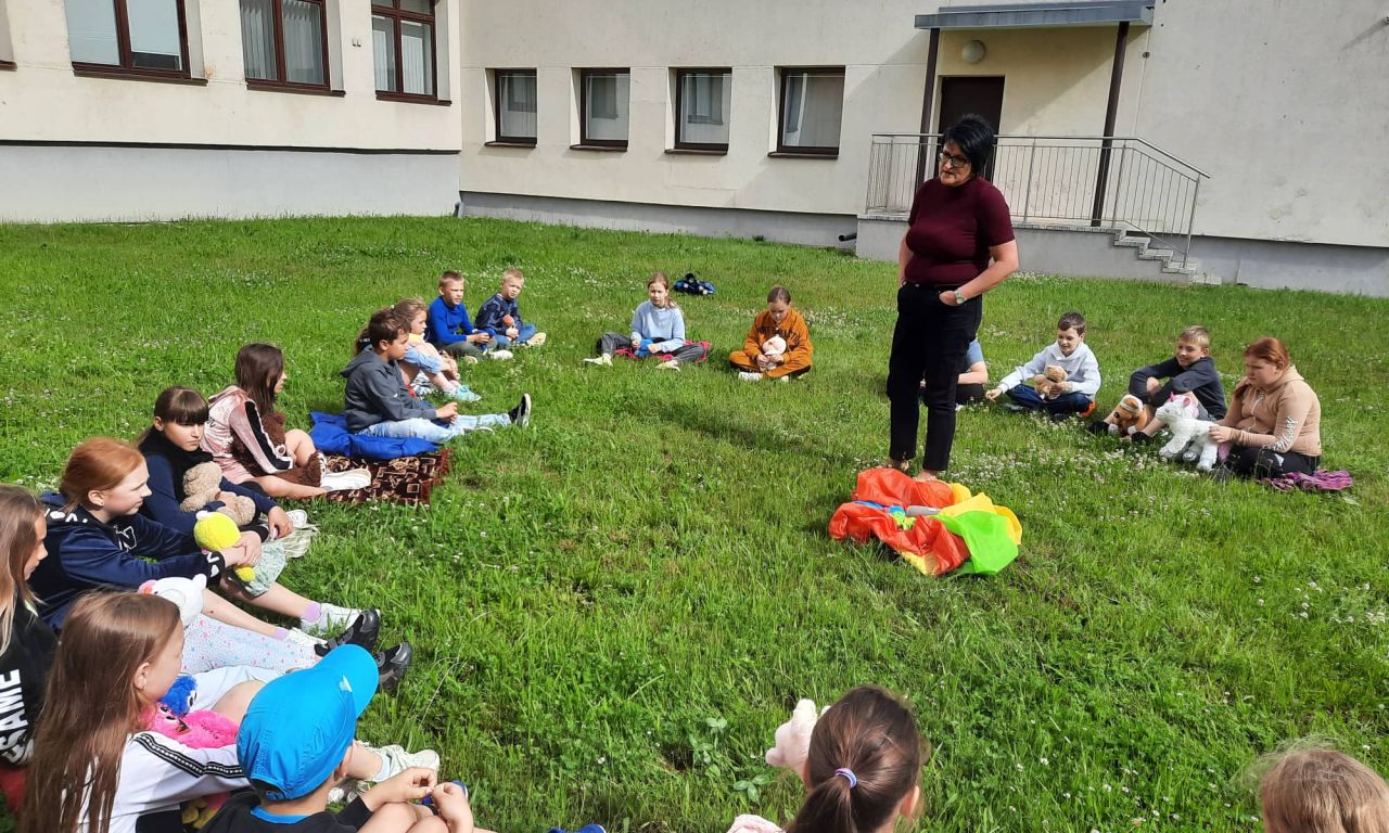 Jau pirmąją dieną vaikai aktyviai pasinėrė į veiklas: kūrė grupių pavadinimus, aplankė Eišiškių laisvalaikio ir verslo centrą, kur žiūrėjo filmą „Didysis šunų pabėgimas“, o po pietų dalyvavo sveikatos priežiūros specialistės I. Žemaitienės organizuotose veiklose, piešė spalvotu smėliu.