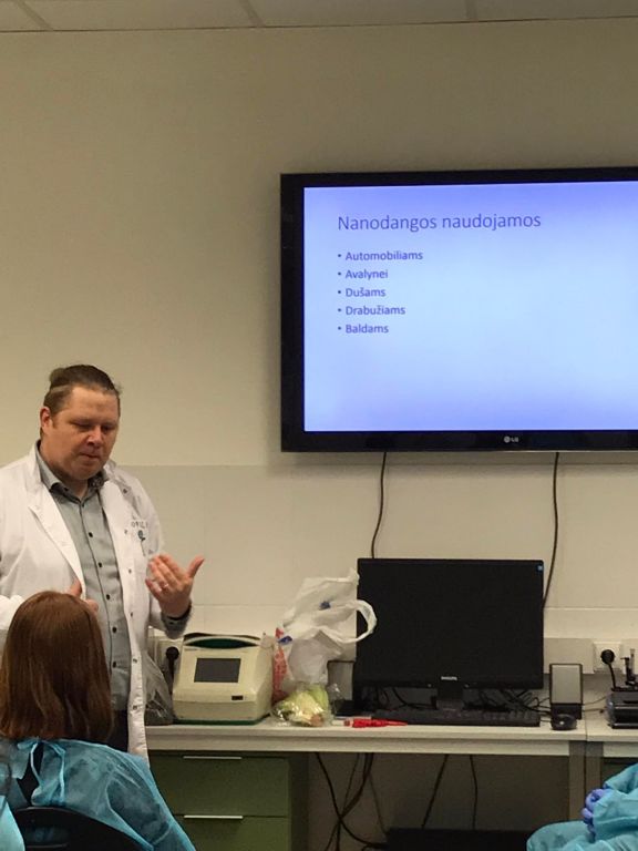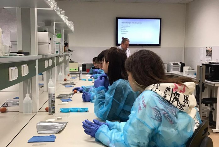 Spalio 25 d. mūsų gimnazijos IG–IIG klasių gimnazistai dalyvavo Lietuvos mokinių neformaliojo švietimo centro organizuotoje jaunojo tyrėjo edukacijoje „Nano danga, kas tai yra ir kaip ją pasigaminti?“ Mokiniai sužinojo, kas yra nano dalelytė ir nanodanga, kokios savybės būdingos nano dangoms bei kur jos naudojamos. Atlikdami bandymus, praktiškai ištyrė nano dangos savybes, palygino jos savybes su kitomis dangomis, patys pasigamino nano dangą bei stebėjo kitus įdomius bandymus. Veiklų metu laboratorijoje vyravo gera nuotaika, noras tirti ir gauti kuo tikslesnius rezultatus. Mokiniai patyrė tyrinėjimo džiaugsmą, patobulino tyrinėjimo įgūdžius, nors buvo ir juokingų nuotykių („liapsusų“).