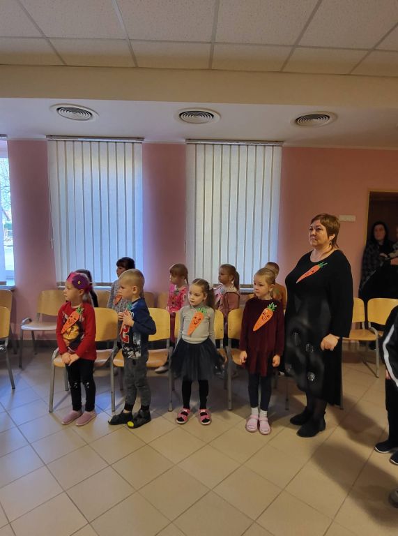 Vaikai žaidė ,,Karštą bulvę“, prisiminė vaisių ir daržovių pavadinimus, aptarė, kur jie auga, o pabaigoje pažaidė komandinį žaidimą ,,Ropė“.