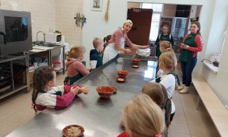Vasario 22d. priešmokyklinio ugdymo grupės vaikučiai vėl pramogavo. Šį kartą smalsumo vedini važiavome į Varėnos rajone Dargužių kaime įsikūrusį amatų centrą. Kelionės tikslas - sužinoti, kaip ant mūsų stalo atsiranda duona.