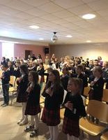 Kovo10 d. priešmokyklinukai, pradinukai ir mokytojos susirinko į gimnazijos aktų salę paminėti Kovo 11-osios dienos. Visi iškilmingai ir drąsiai sugiedojome Lietuvos himną. Mokiniai pasiklausė pasakojimo, kaip 1990 metais kovo 11d. parlamentarai vienbalsiai nusprendė atkurti Lietuvos Nepriklausomybę. Renginyje skambėjo nuoširdžiai deklamuojamos vaikų eilės ir dainelės ,kurias jie skyrė Lietuvai.