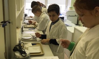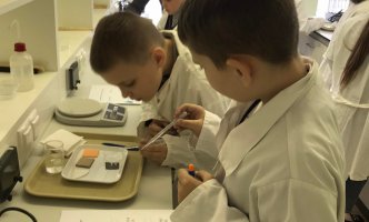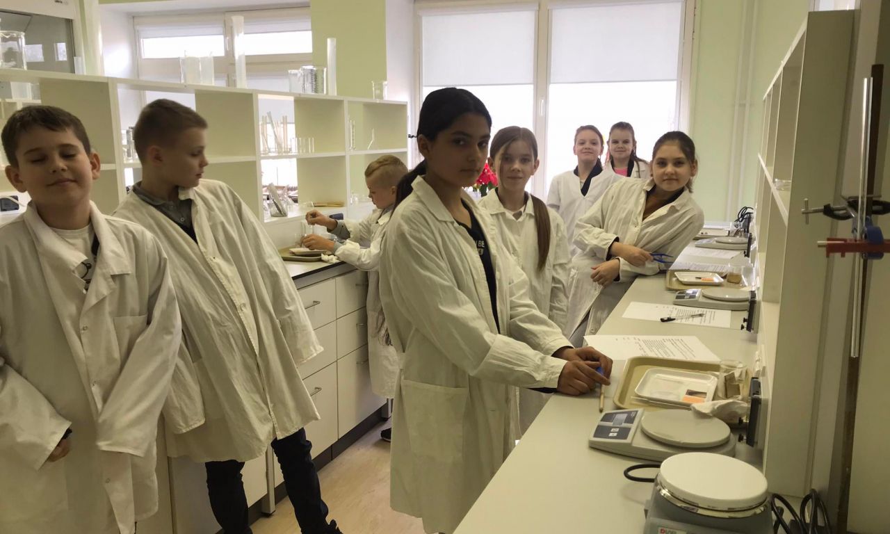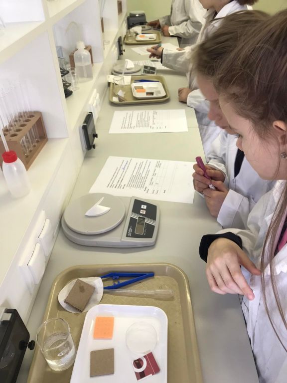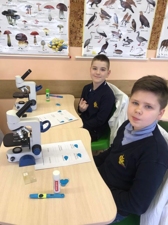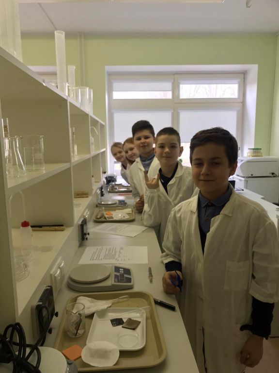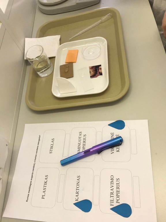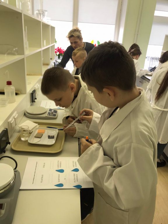 Laboratorijoje ketvirtokai nustatinėjo, kurios medžiagos „myli“ vandenį – yra hidrofilinės, o kurios „nemyli“ vandens – yra hidrofobinės. Mokėsi saugiai dirbti su laboratorine įrangą bei priemonėmis, mokėsi formuluoti spėjimą, analizuoti gautus rezultatus ir daryti išvadas.