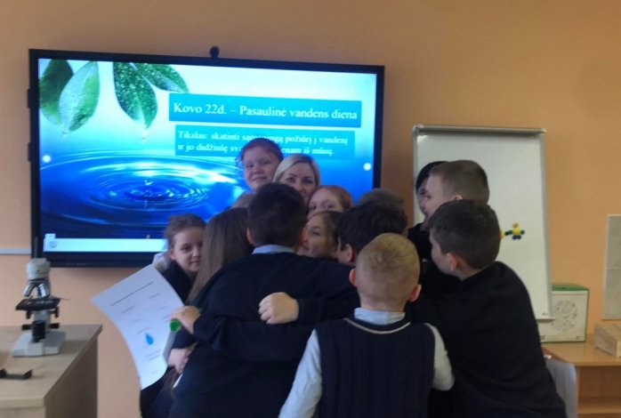 Šiais metais gimnazijoje Pasaulinė vandens diena buvo paminėta kovo 24 d. 4a klasės mokiniai kartu su biologijos mokytoja Teresa B. analizavo, kuo vanduo yra svarbus ir kodėl reikia saugoti vandens telkinius, jų neteršti. Pradinukai, stebėdami vandens lašelį pro mikroskopą, sužinojo, kad vandenyje gyvena ne tik matomi gyvūnai – žuvys, dėlės, moliuskai, bet ir maži, plika akimi nematomi organizmai.