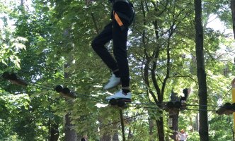 Po veiklų universitete išvyka tęsėsi Vilniaus UNO PARKE, kur mokiniai surado atokvėpį, aštrius įspūdžius, pasimėgavo pramogomis bei susipažino su laipiojimo medžiuose filosofijos atspindžiu: laisve gyventi klausant savo širdies, drąsa peržengti savo ribas ir pasitikėti pasauliu aplink, augti ne tik įveikiant kliūtis, bet ir priimant tai, kas stipriau už mus.