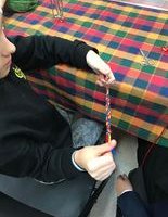 Lapkričio 17 d. ketvirtokai vyko į Dargužių amatų centrą. Ten, pasinaudodami Kultūros paso paslauga, iš siūlų rišo juostas. Edukatorė papasakojo, kaip juostas rišdavo ir ausdavo seneliai anksčiau, kokiais tikslais juostas buityje naudojo. Tada mokinius pakvietė išbandyti juostų rišimo amato. Veiklos pradžia pasirodė visai nelengva, nes reikėjo suprasti, kaip siūlus narstyti, skirti dešinę pusę nuo kairės, o siūlai tarp pirštų painiojosi. Juostą surišti prireikė laiko, kantrybės ir mokytojų pagalbos.