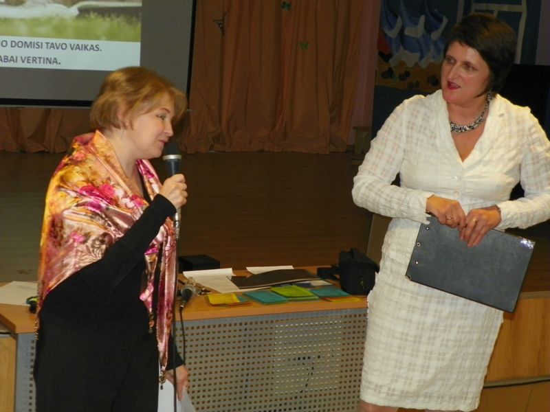 Lapkričio 27 d. mūsų gimnazijos aktų salėje vyko renginys 1-5 klasių mokinių tėvams „Kaip padėti vaikui įgauti tikrų galių“. Į renginį atvyko daug tėvų. Kai kurių vaikų tėveliai (tai mus labai džiugina!), atėjo poromis. Beje, beveik visos pradinių klasių mokytojos, dirbančios mūsų gimnazijoje, taip pat yra pradinukų mamos! Renginį vedė vyr.socialinė pedagogė Tatjana Babkina ir psichologė Rima Česokienė.