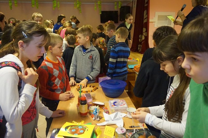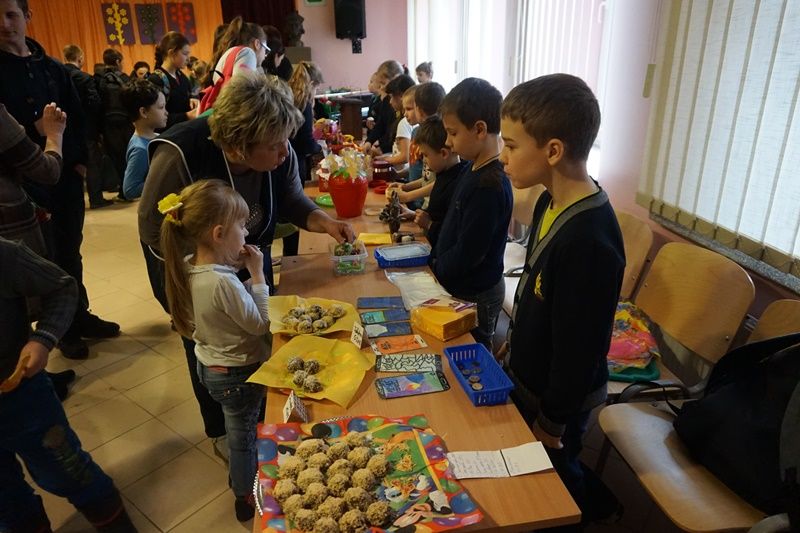 Nors mugę organizavo pradinių klasių mokiniai bei mokytojos, tačiau į salę sugužėjo beveik visi gimnazijos bendruomenės nariai. Kaip ir kiekvienais metais mugę aplankė ir mūsų mažieji draugai iš Eišiškių lopšelio – darželio „Žiburėlis“ „Bitučių“ grupės. Visi atvykusieji galėjo įsigyti rankų darbo dirbinių, įvairiausių suvenyrų, o smaližiai - paragauti įvairiausių skanėstų : spurgų, vaflių, pyragų, sausainių, kibinų. Geranoriškai savo mažosioms atžaloms padėjo ir jų tėveliai.