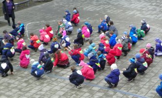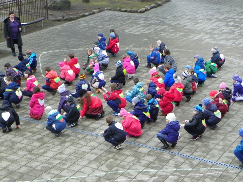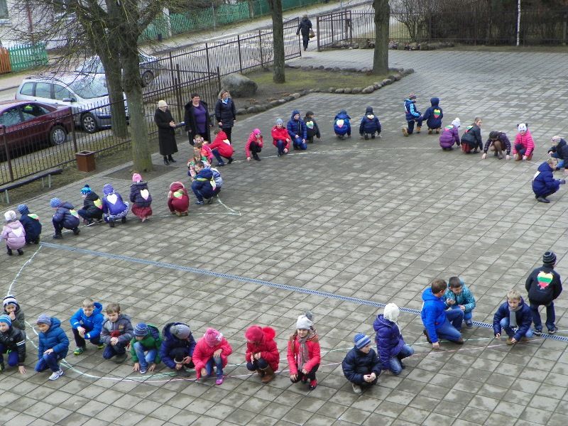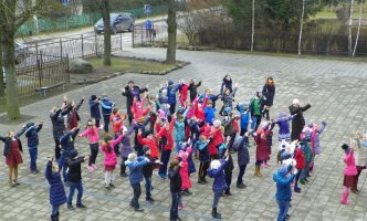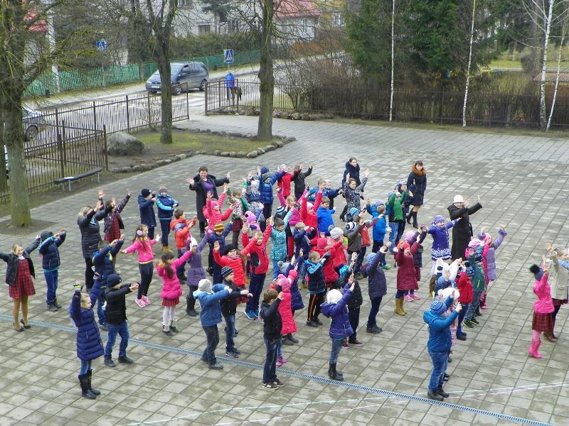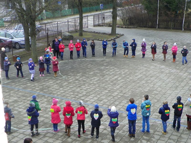4 pamokos metu pradinių klasių mokinai pasipuošę trispalvėmis širdelėmis gimnazijos kieme šoko „Laisvės šokį“. Šviečiant pavasario saulytei ir mokinių šypsenoms, šokis išties atrodė įspūdingai.