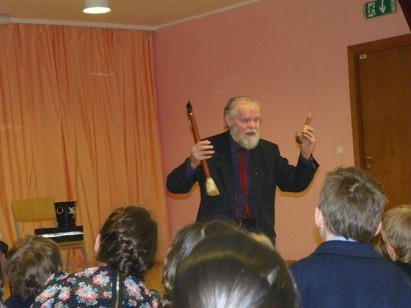Albinas Batavičius - nepaprasto talento žmogus.Muzikantas, bandonijos virtuozas, dainininkas, aktorius, etnografas. Pamokėlės – koncerto metu išsamiai papasakojo apie lietuvių liaudies instrumentus, jų istoriją. Pradinukai sužinojo, kuo grojo piemenukai, kaip skambėjo skerdžiaus ragas, kleketas, tarškės, tabalai. Daugumą šių instrumentų vaikai matė pirmą kartą. Visus instrumentus mokiniai ir mokytojai galėjo išbandyti, pagroti kartu su žymiuoju etnografu. Nustebino ir tai, jog muzikantas Albinas pats puikiai groja visais instrumentais, net iš polietileno maišelio, žąsies plunksnos išgauna puikias melodijas...