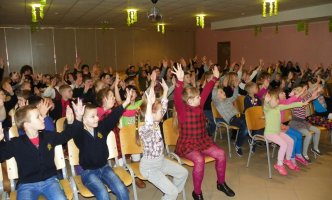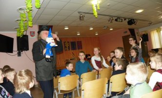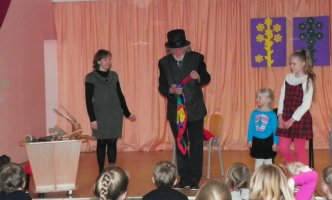 Pamokėlės – koncerto linksmoji dalis - iliuzionisto A. Guduko pasirodymas. Stebukladarys ne tik pats parodė keletą smagių triukų, bet ant scenos kartu papokštauti kvietė ir mokinius bei mokytojas.