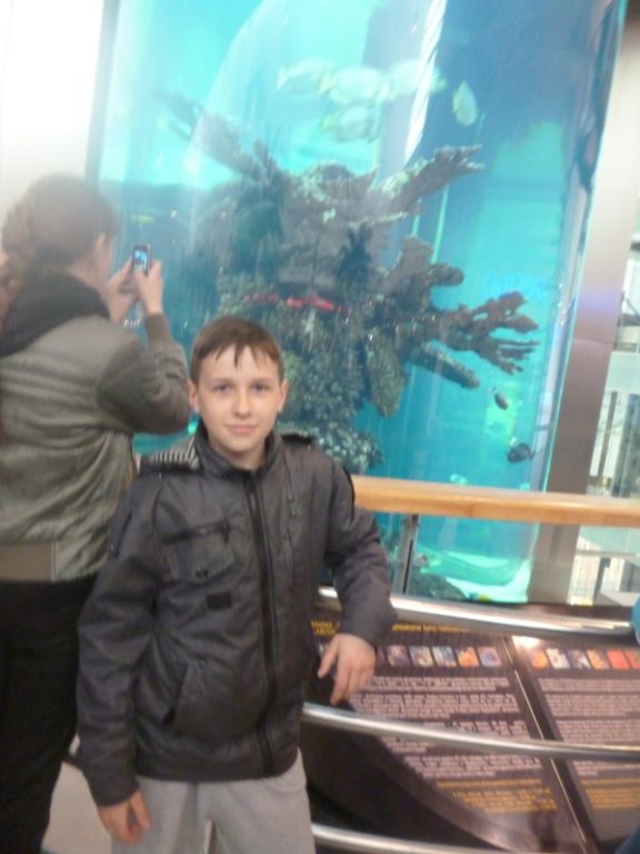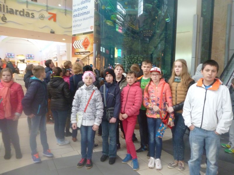 Visi padėkojame gidams už nuostabią „kelionę“ po Kauno oro uostą ir savo autobusu nuvykome į „MEGA“ prekybos centrą, kur įrengtas 10 metrų aukščio akvariumas. Akvariume plaukioja kelių rūšių žuvys bei... rykliai.