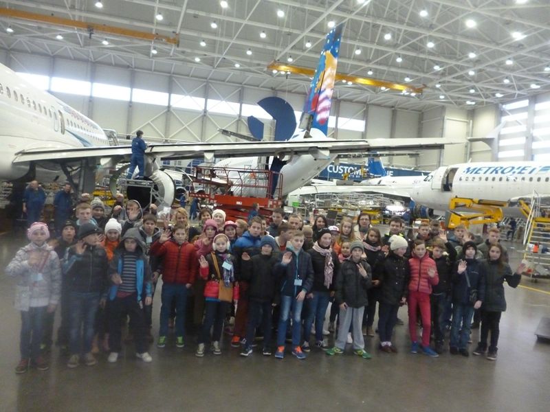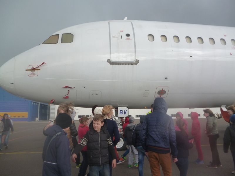 Vėliau nuvykome prie angaro, kur remontuojami lėktuvai. Gidams paprašius, mums leido įeiti į vidų. O ten pamatėme 4 remontuojamus lėktuvus. Gidai papasakojo apie lėktuvų remontą ir darbų atlikimo specifiką. Sužinojome, kad kiekvienas specialistas atlieka tik vieną darbą, t.y. jei darbuotojas atlieka sparno remontą, tai variklio jis jau remontuoti negali.