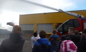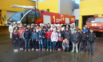 „Kelionės“ pabaigoje apsilankėme technikos, kurios pagalba yra tvarkomas „pakilimo-nuleidimo“ takas, garažuose. Pamatėme gaisrinės mašinas. Gaisrininkas pademonstravo vienos mašinos galimybes.