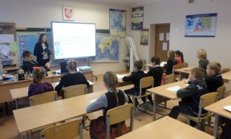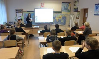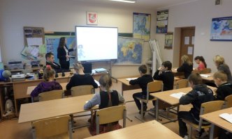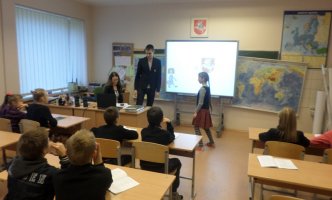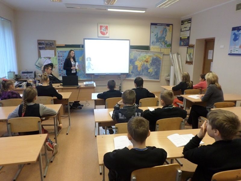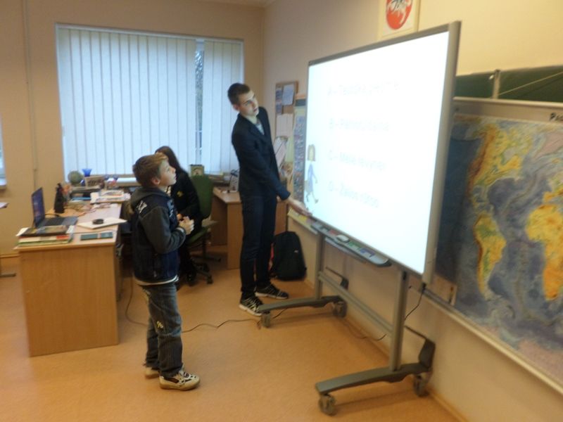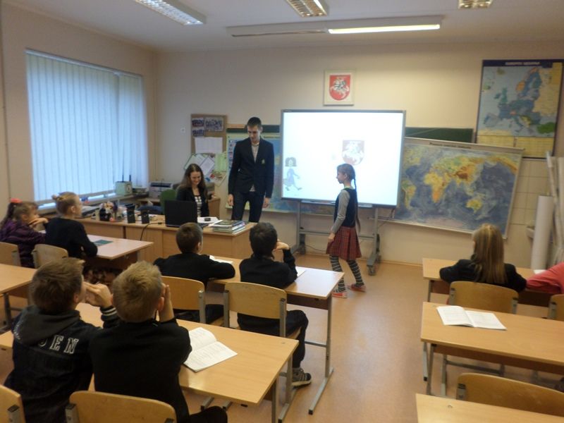 Pamokos pabaigoje abiturientas Valdemaras 4b klasės mokiniams surengė trumpą viktoriną. Ketvirtokai aktyviai atsakinėjo į klausimus, o už teisingus atsakymus abiturientas apdovanojo „saldžiais“ prizais - saldainiais. Pradinukai nuoširdžiai padėkojo abiturientams už įdomią pamoką.