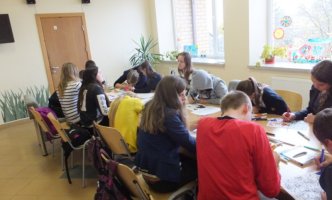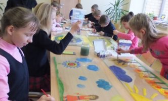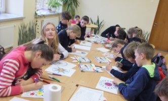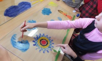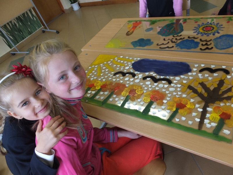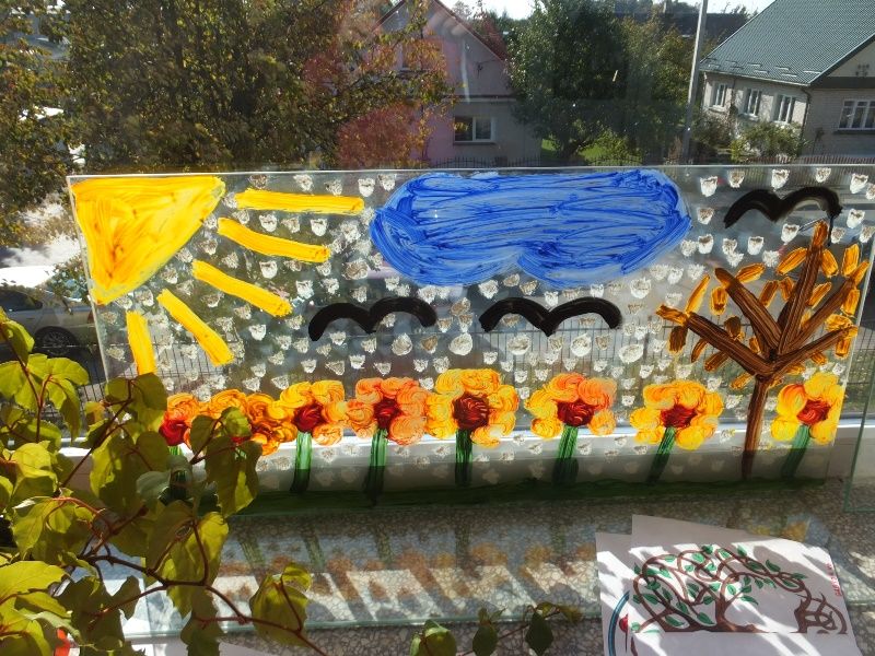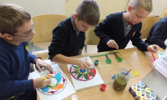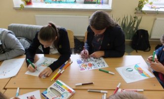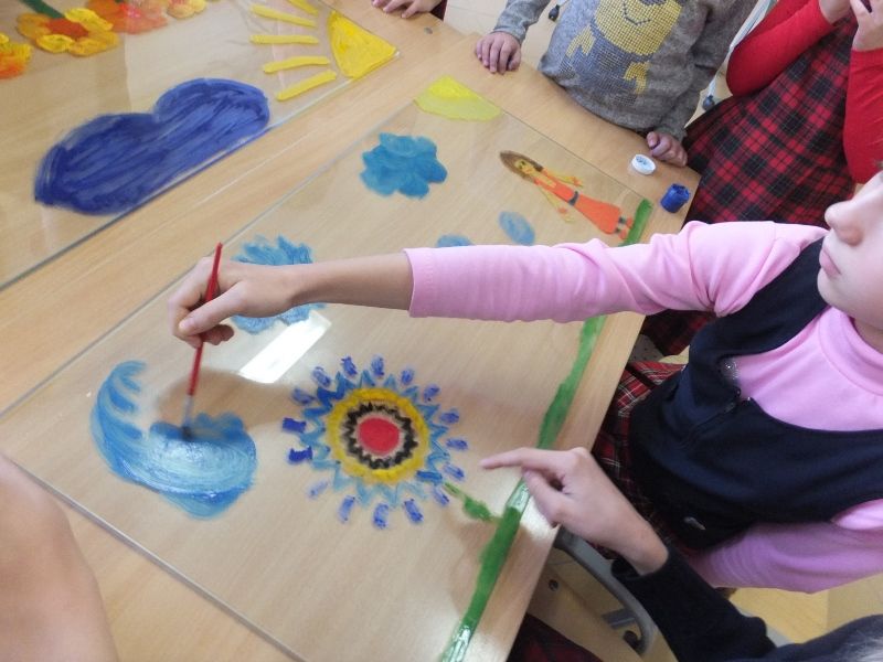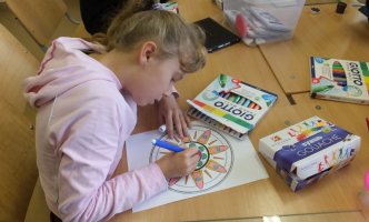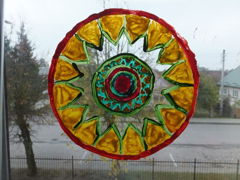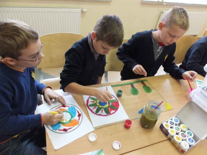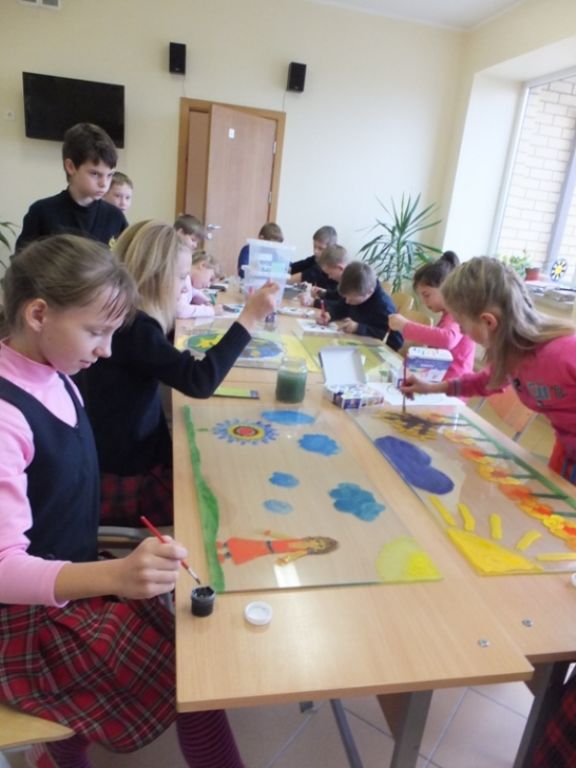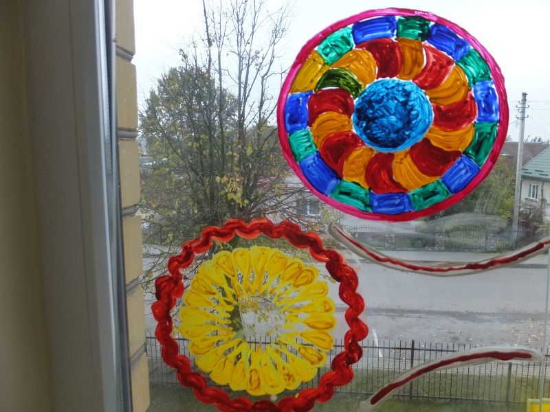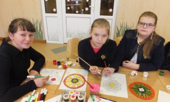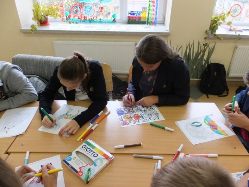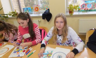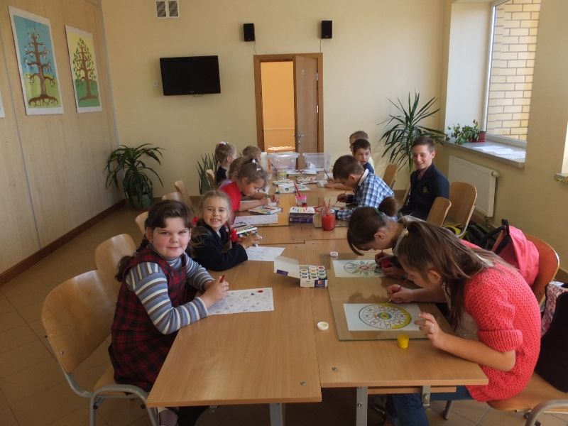 Vienas iš stresą mažinančių veiksmų – piešimas. Visą savaitę mokiniai turėjo galimybę pertraukų metu ir po pamokų piešti guašu, flomasteriais, pieštukais. Piešė ant stiklo ir popieriaus. Vaikų poilsio erdvė virto meninės terapijos erdve. Jie piešė ir spalvino... MANDALAS! Mandala – tai vienas iš būdų geriau pažinti save, žvilgtelėti į pasąmonės gelmes ir ... atsipalaiduoti.