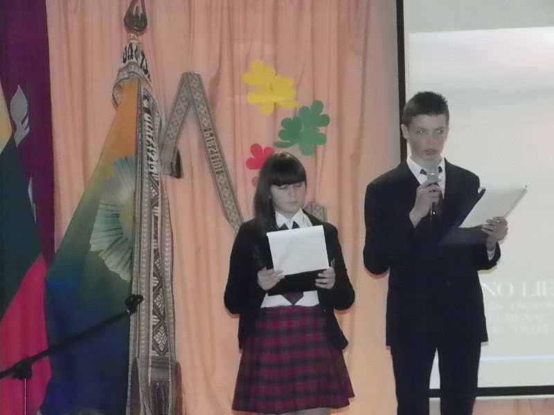 Šventiniame renginyje netrūko autentiškų nūdienos vaizdų. Mokiniai galėjo pasigėrėti Lietuvos kraštovaizdžiu ir kartu paklausyti šiuolaikinės popmuzikos. Išgirdome aukštesniųjų klasių mokinių, besimokančių įvairiose šalies mokyklose, nuomonę apie gyvenimą Lietuvoje, apie tautiškumą, pilietiškumą. Renginio pabaigoje visi , kas buvo salėje, skambant Marijono Mikutavičiaus ir choro ,,Ąžuoliukas” įrašui, dainavo žinomą dainą ,,Aš labai myliu Lietuvą”.