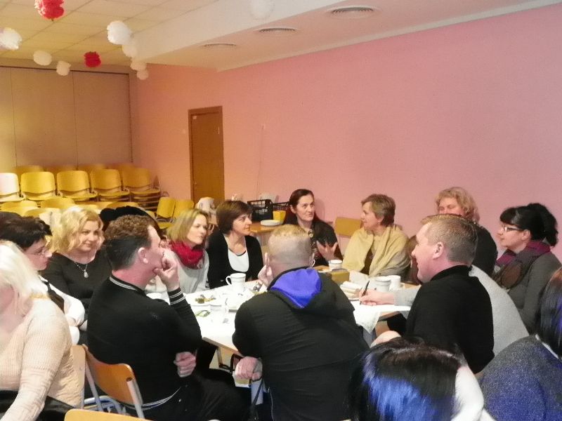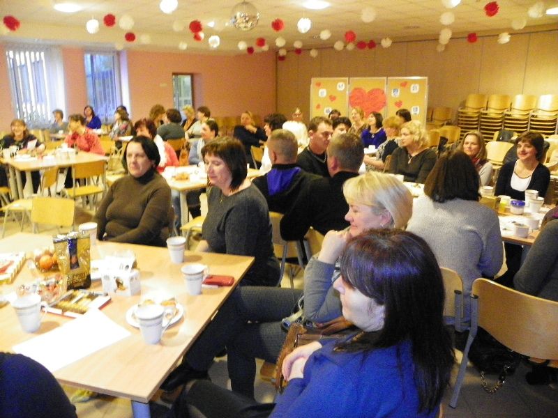 Paskui aptarėme mūsų renginio temą. Klausėme tėvų nuomonės, kas yra paauglių meilė? Ar egzistuoja meilė tarp paauglių? Gavome įdomių atsakymų, išgirdome įvairių nuomonių. Pristatėme tėvams filmuotą medžiagą, kurioje gimnazijos mokinių ir darbuotojų mintys apie meilę...Tėvai maloniai nustebo išvydę savo paauglius ir išgirdę, kaip jie įdomiai reiškia savo nuomonę...Gimnazijos socialinė pedagogė ir psichologė papasakojo, kad tėvai, to nesuvokdami, pradeda vaikus ruošti meilei nuo pirmos vaiko gyvenimo dienos. Kalbėjome apie tai, jog geri vaikų santykiai su tėvais – tai vaiko emocinės sveikatos pagrindas. Kartu su anglų kalbos mokytoja Emilija Zuzienė suvaidinome situaciją „Pirmoji meilė“ , kurioje - mamos ir dukters santykiai, pokalbis apie dukters pirmąją meilę. Tėvai turėjo atsakyti į iš anksto paruoštus klausimus ir sugalvoti situacijos pratęsimą. Džiugu, kad mūsų gimnazistų tėveliai buvo labai aktyvūs, diskutavo, pristatė grupių atsakymus!