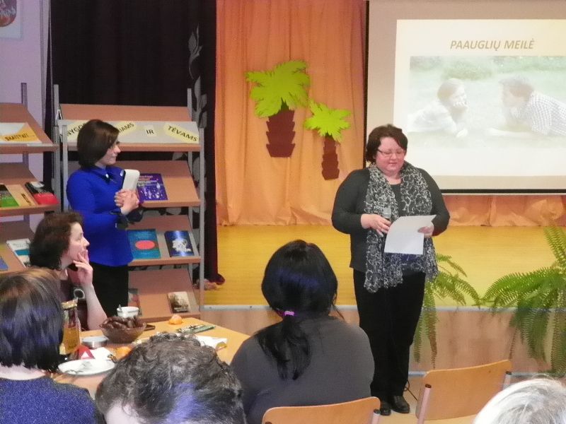 Savo patirtimi dalinosi ir mokytojos - mamos Nijolė Jotko, Liudmila Jurgelevičienė ir Irena Blažukonienė, kurios jau užaugino savo paauglius... Bibliotekos vedėja Aldona Dailidkaitė kalbėjo apie paauglių meilę ir pristatė tėvams knygas, kuriose yra daug naudingos informacijos, patarimų apie paauglių auklėjimą, tėvų ir paauglių tarpusavio santykius. Knygas: L.Slušnys „Dėmesio: paauglystė. Tėvų knyga.“, R.Dreikurs, V.Soltz „Laimingi vaikai – iššūkis tėvams“, L.Šlušnys, J.Girskis „Būk vyras. Berniukų knyga“, E.Čekuolienė, V.Dobrovolskienė „Nuo ančiuko iki gulbės. Mergaičių knyga“ ir daugelis kitų padės paauglių tėvams nepasimesti sudėtingose situacijoje bendraujant su paaugliais.