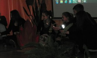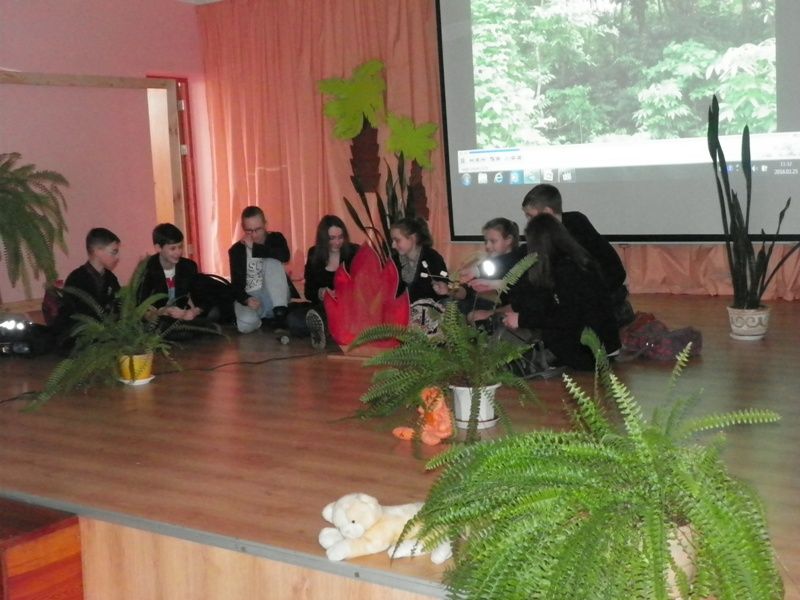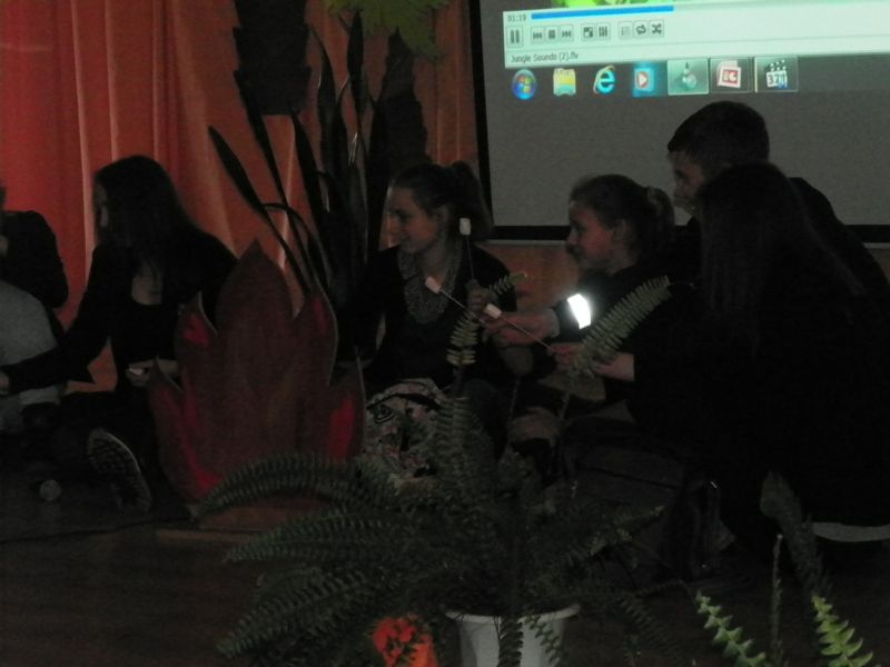 Mokiniai buvo pakviesti dalyvauti viktorinoje „Atpažink veikėją ir jį apibūdink“. Reikėjo įvardinti parodyto knygos „Mauglis“ veikėjo vardą ir apibūdinti, kaip autorius jį pavaizdavo knygoje. Už teisingą atsakymą laukė „džiunglių prizas“. Vėliau visi kartu „keliavome į džiungles“, „sutikome“ įvairius gyventojus bei „slėpėmės“ nuo piktojo Šerchano. Renginys skambant muzikai „Gyvūnijos pasaulyje“, baigėsi filmuku „Mūsų piešiniai pagal knygą „Džiunglės“.